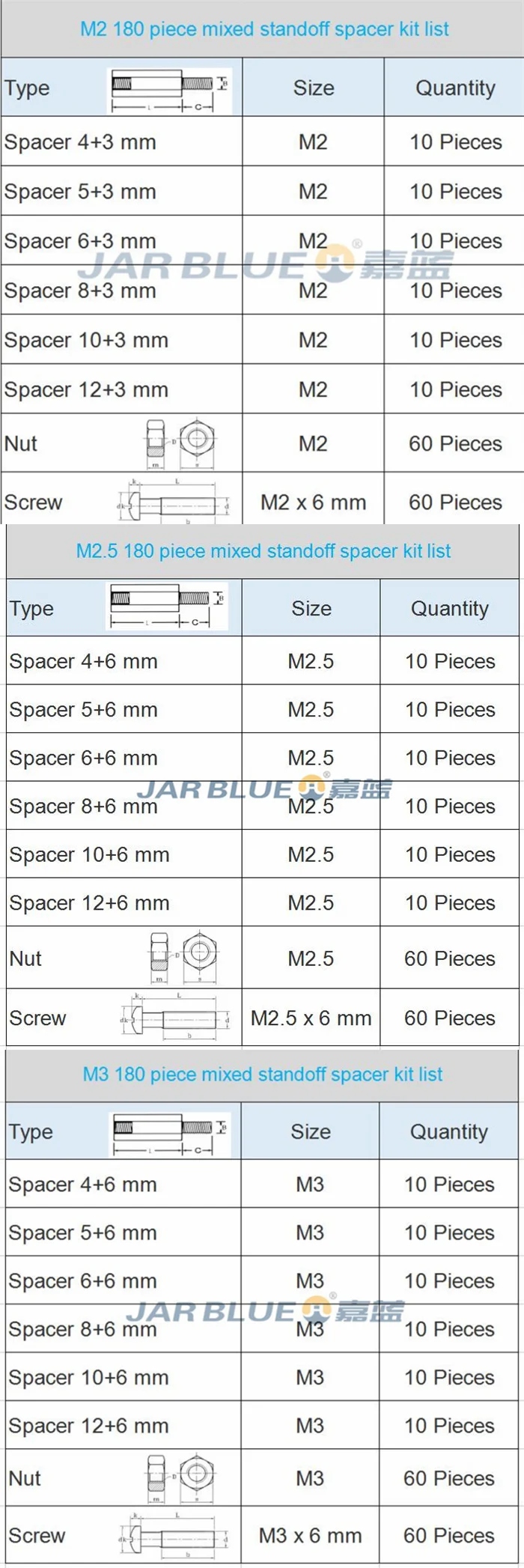 180 шт.компл. M2 * L + 3 мм M2, 5M3 * L + 6 мм Шестигранная гайка, винт, латунный резьбовой столб, печатная плата, комплект прокладок