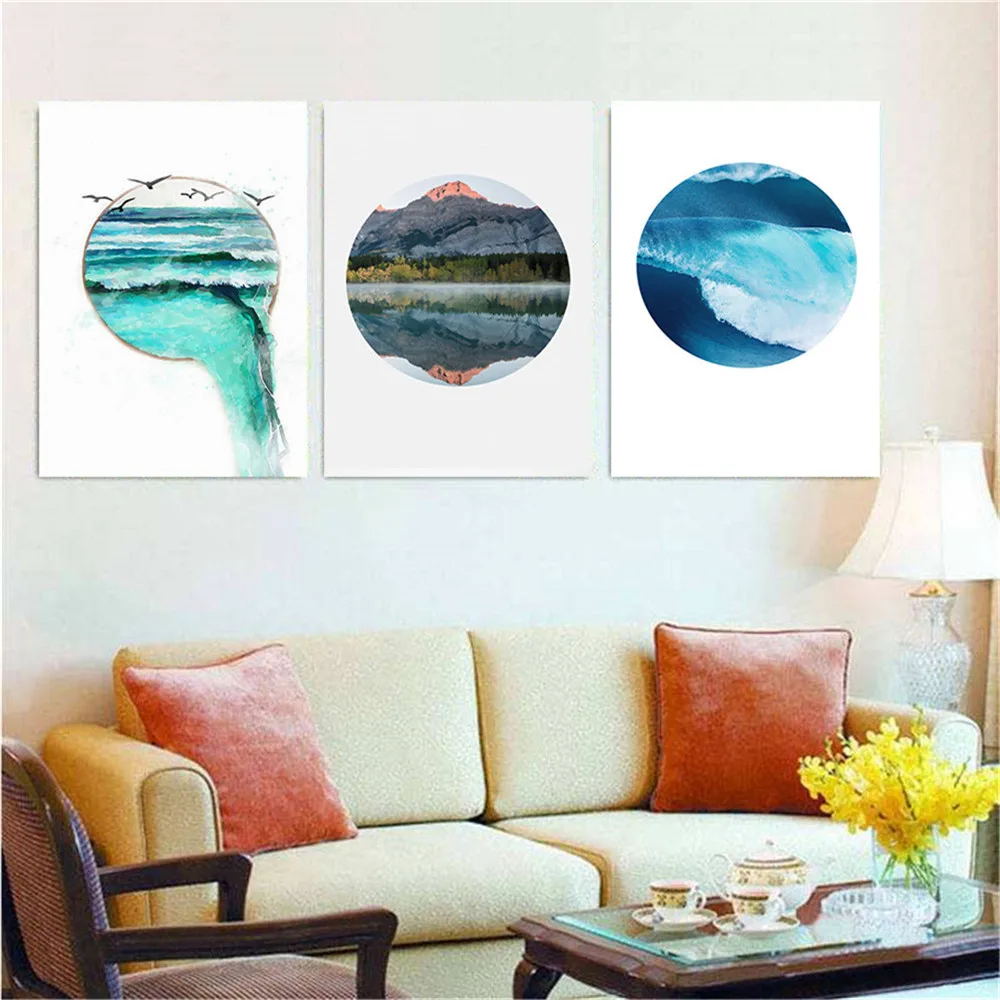 Скандинавский пейзаж, холст, печать, волна, постер с изображением гор, морские настенные картины для гостиной, украшение для дома, Настенный декор