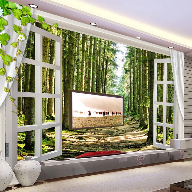 3D фотообои на заказ, 3D обои на окна, дерево, художественная роспись гостиной, спальни, прихожей, фото, водостойкие обои из нетканого материала
