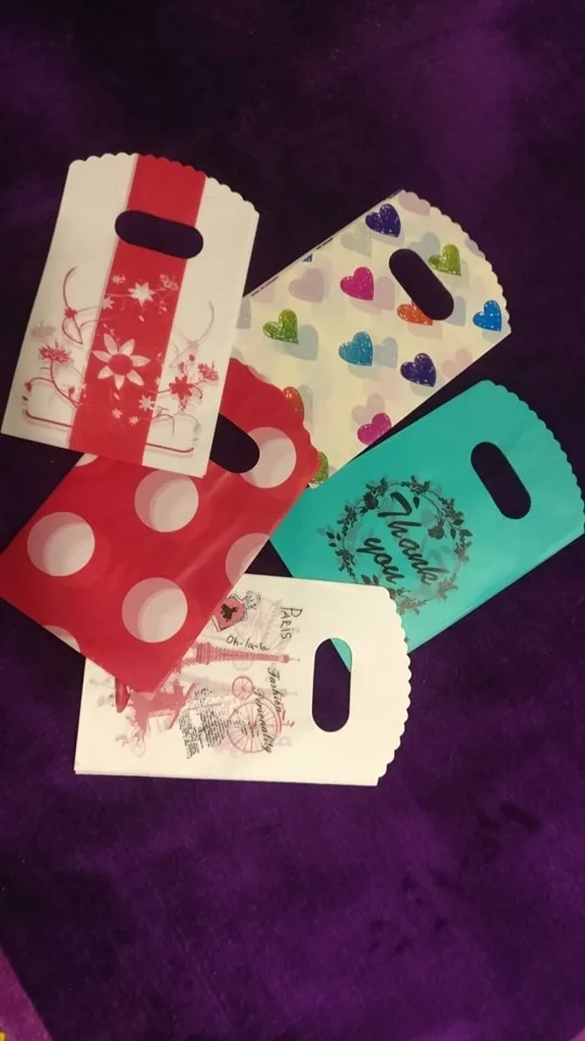 Оптовая продажа Маленькая цветная пластиковая сумка "спасибо" 9x15 см 50 шт./лот упаковка для ювелирных изделий пластиковые подарочные пакеты с ручкой Бесплатная доставка