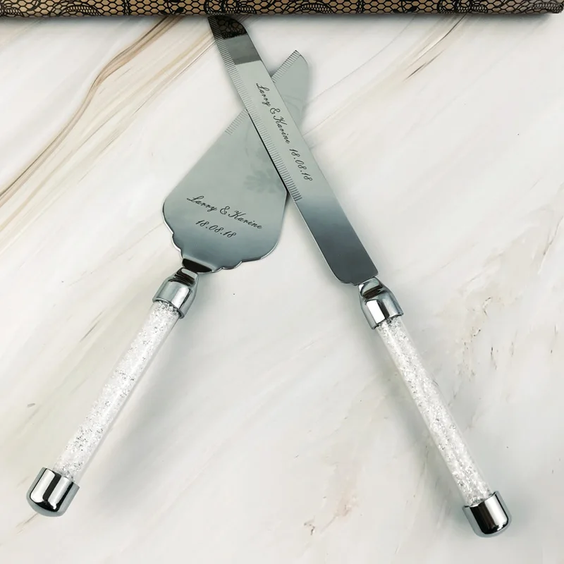 Персонализированный Набор для торта, нож, лопата для пиццы, свадебные очки, кристалливечерние, нержавеющая сталь, элегантный H1123