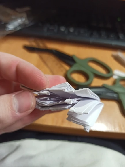 Пришли за 24 дня, в целом нормально. Качество металла хорошее, точно сталь. Кончиком могут спокойно резать 8 слоёв офисной бумаги плотностью 80 г/см2. Если резать местом ближе к оси, то вполне приемлемо режет слой из 32 листов офисного А4 плотностью 80 г/см2. Джинсы не пробовал, но я думаю это будет им расплюнуть)