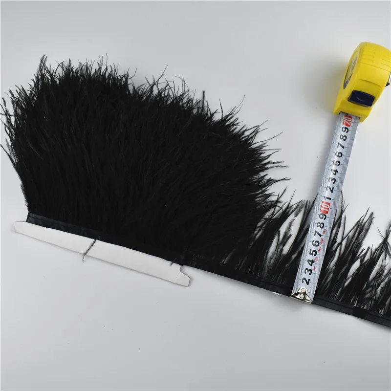 Черно-обрезки страусовых перьев страусиные перья для рукоделия, лента с бахромой для юбок, праздничная одежда, 1 м, 5 м, 10 м, 8-10 см