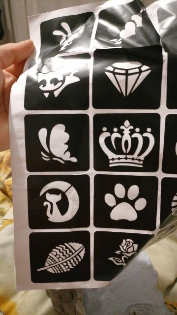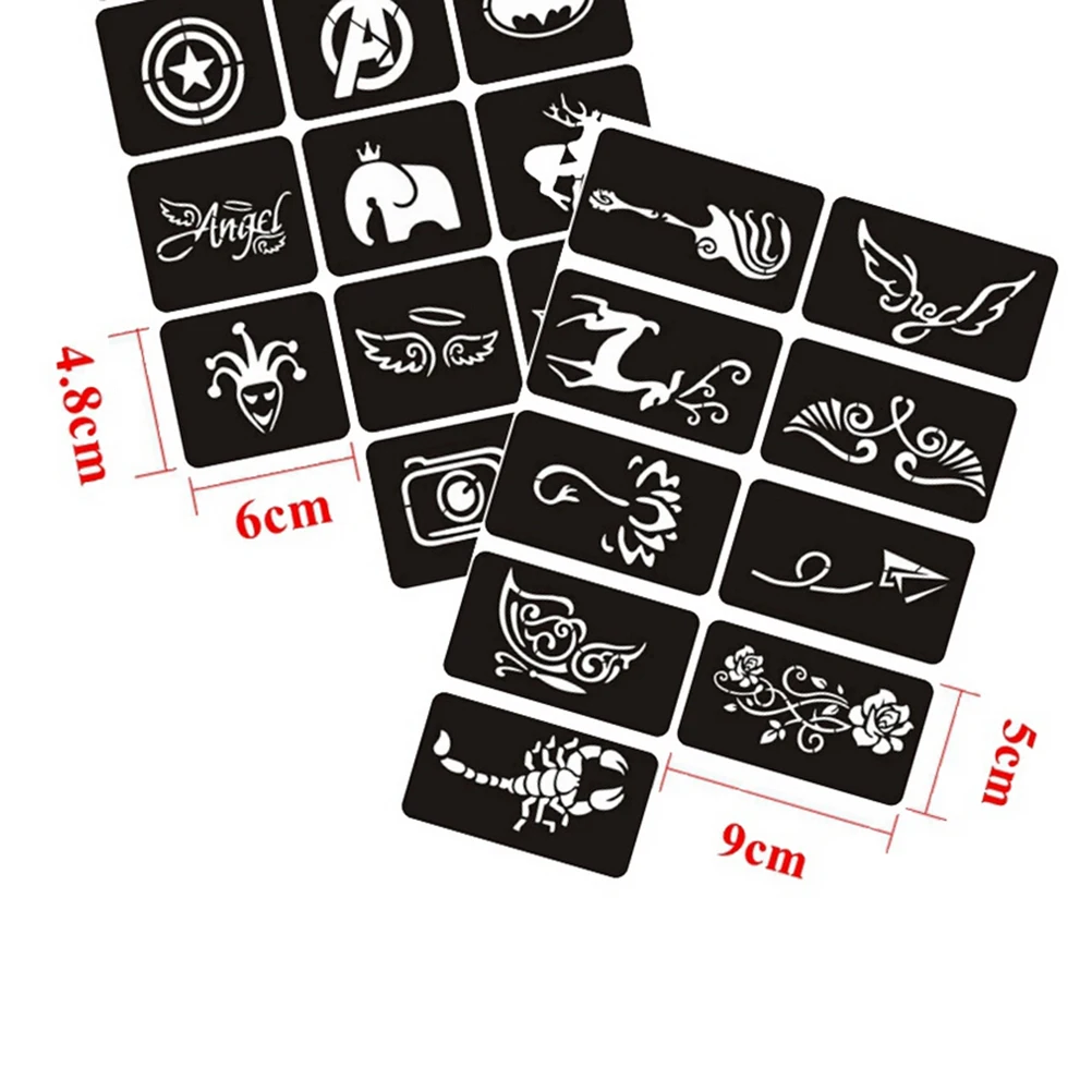Особенность 1: мультяшная аэрография блеск тату трафаретОсобенность 2: Трафарет только два слояВключает: 1 * трафарет татуировки