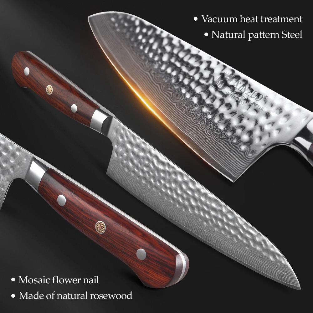 Ножи XINZUO из дамасской стали, 7 дюймов, с ручкой из розового дерева