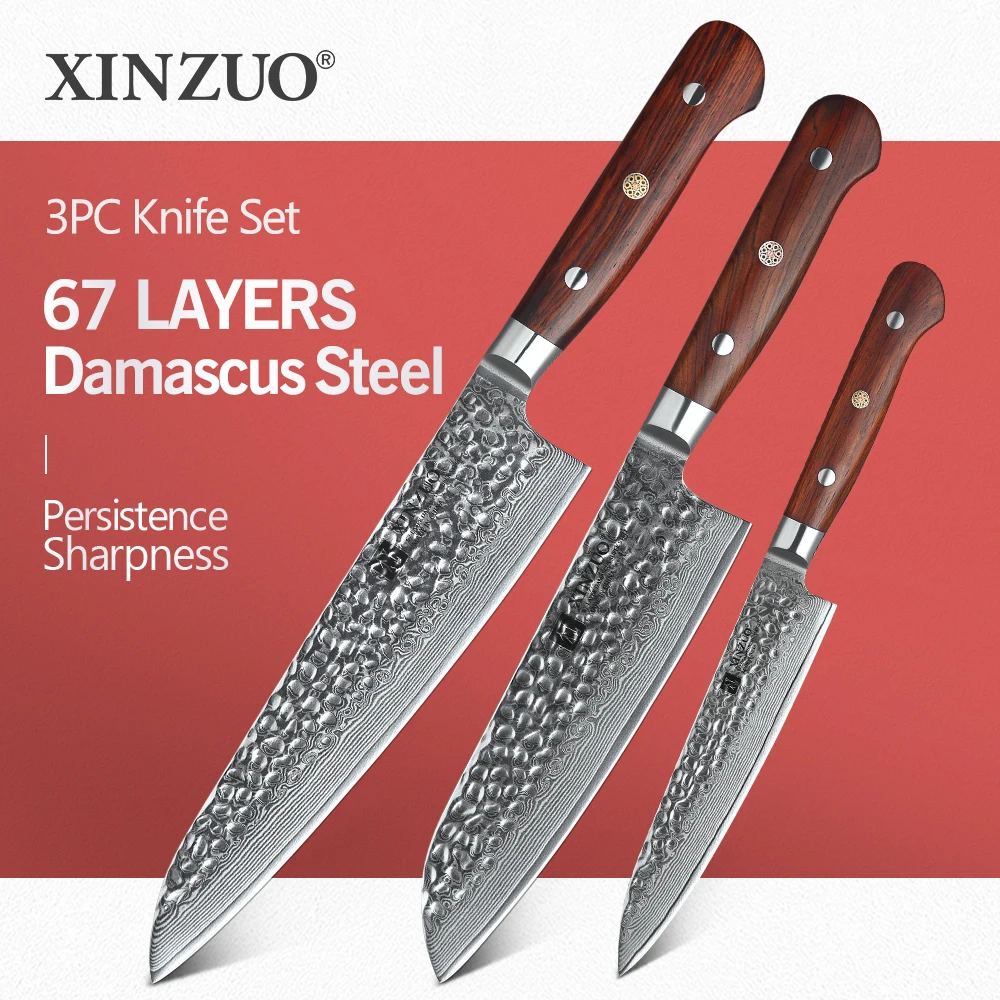 Набор кухонных ножей XINZUO, 3 шт., японская 67 слойная Дамасская нержавеющая сталь VG10, нож шеф-повара, универсальный, сантоку, ручка из розового дерева