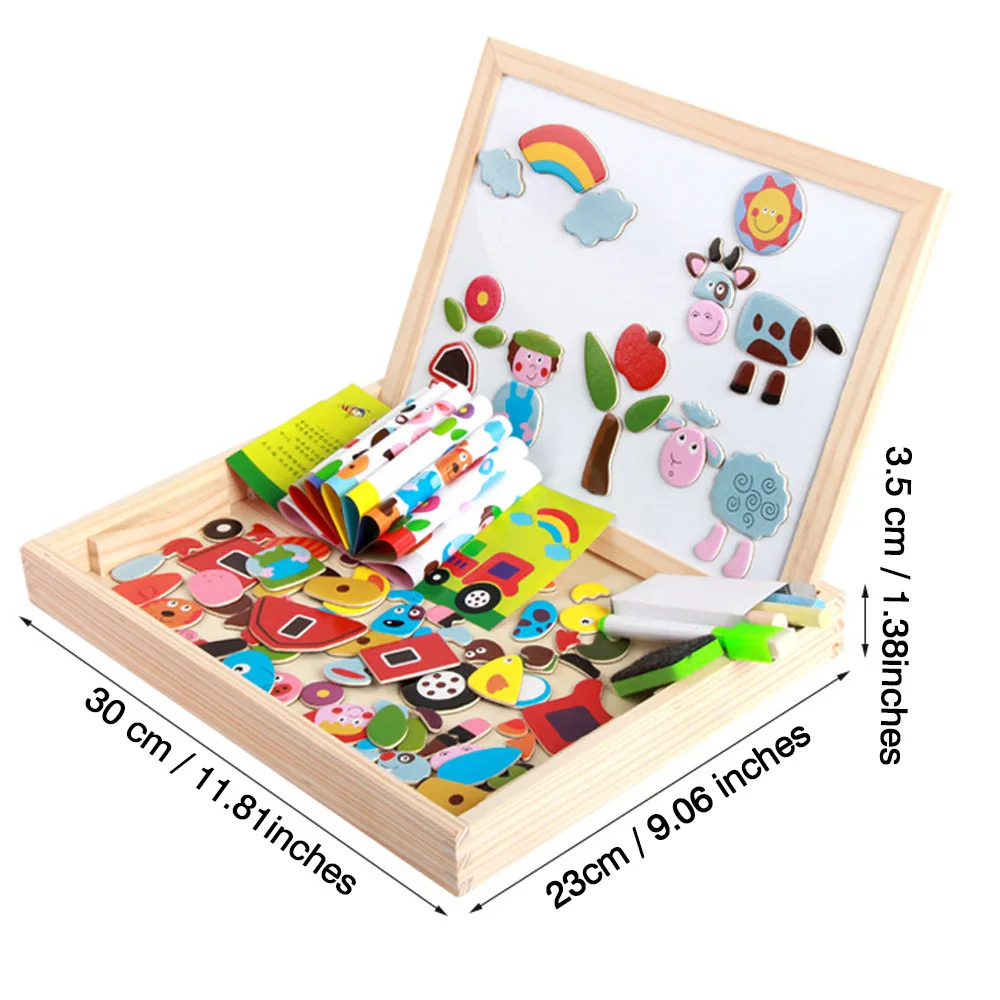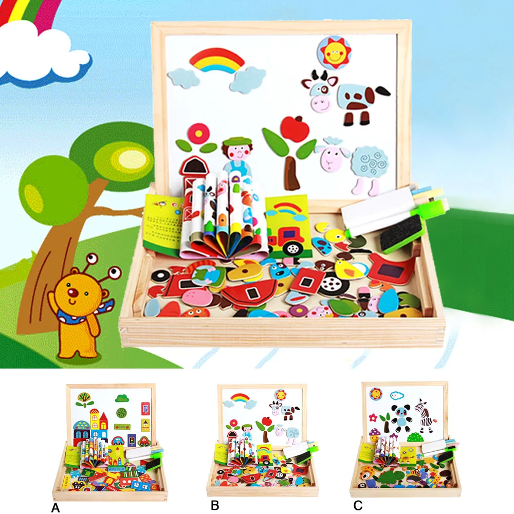 Портативная детская магнитная доска для рисования, Набор пазлов с двойным лицом, деревянная развивающая игрушка, подарок для детей 3 лет