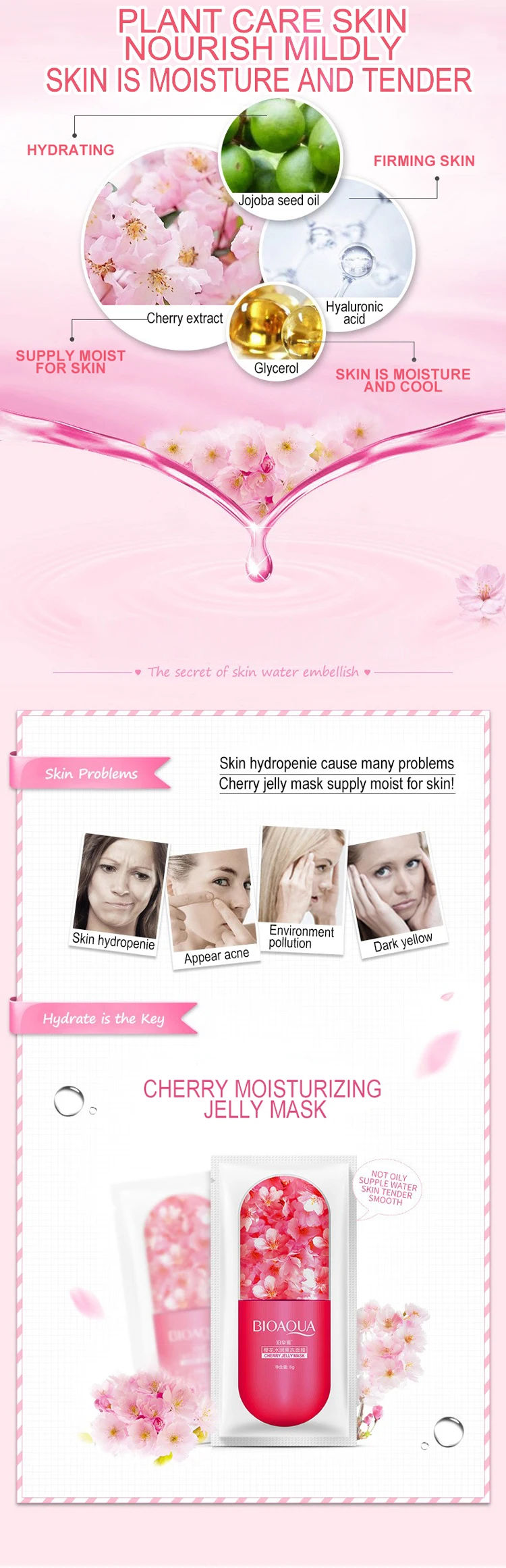 100 шт.лот BIOAOUA листовая маска-желе для лица увлажняющая эссенция глубокое увлажнение уход за кожей лечение акне