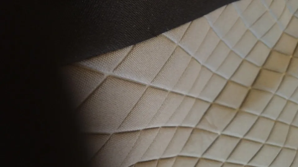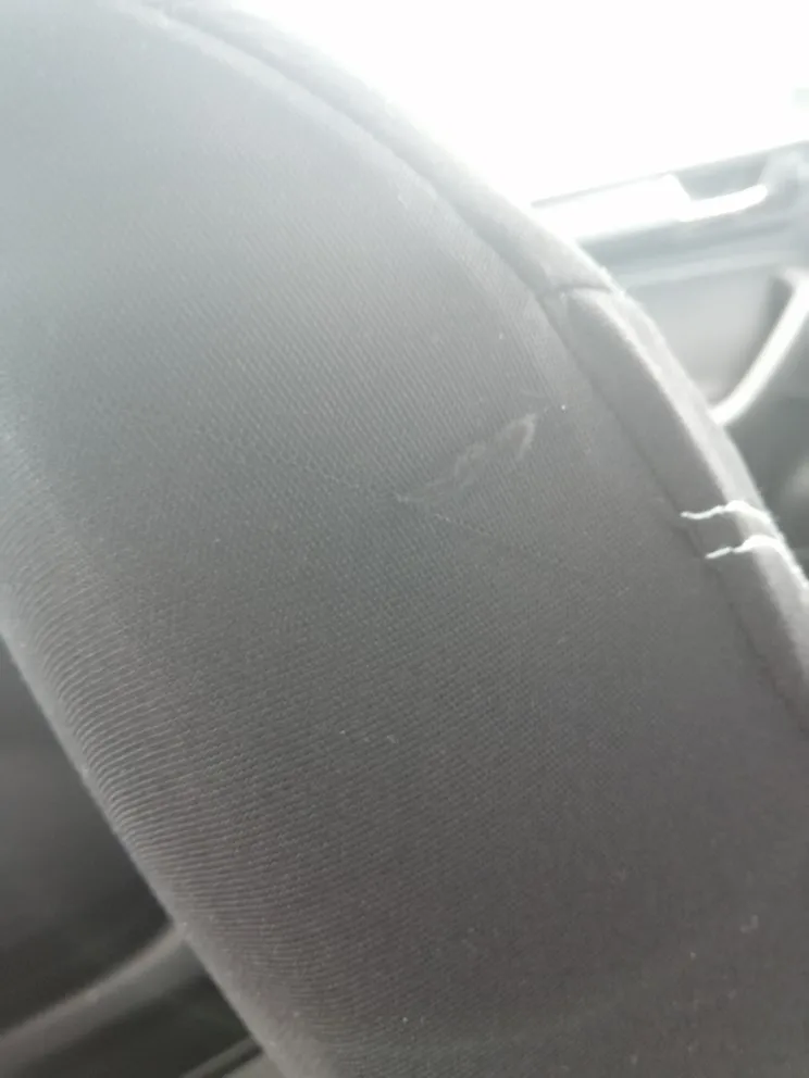 Качество материала среднее, лёгкое прикосновение липучкой от рюкзака оставляет зацеп на ткани, темная часть. Сели хорошо на Солярис 2016 г.в., только на спинках передних сидений натянулись как на барабане.