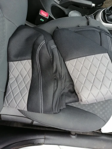 Сзади нет дырок для подголовников. Но это не проблема. Карманы очень маленькие сзади сидений, родные были намного лучше, но я сделал прорезь и теперь два кармана. В принципе, неплохо, на форд фьюжн передние кресла слегка маловаты из-за большой толщины сидений. Если хотите, чтобы было аккуратно и красиво, нужно потратить достаточно времени на установку. Я около 3.5 ч. Пришло очень быстро, около 1,5 недели