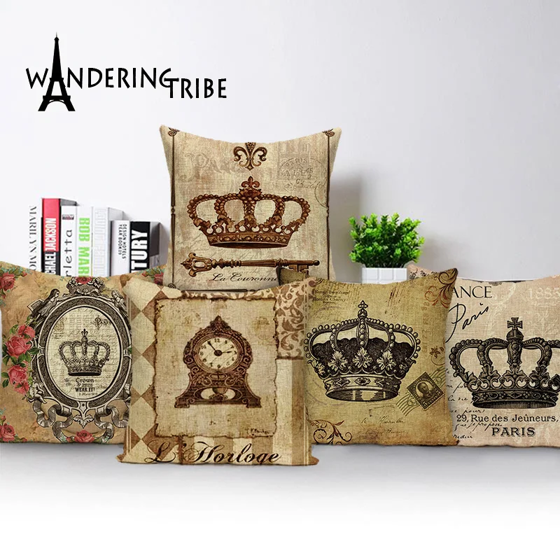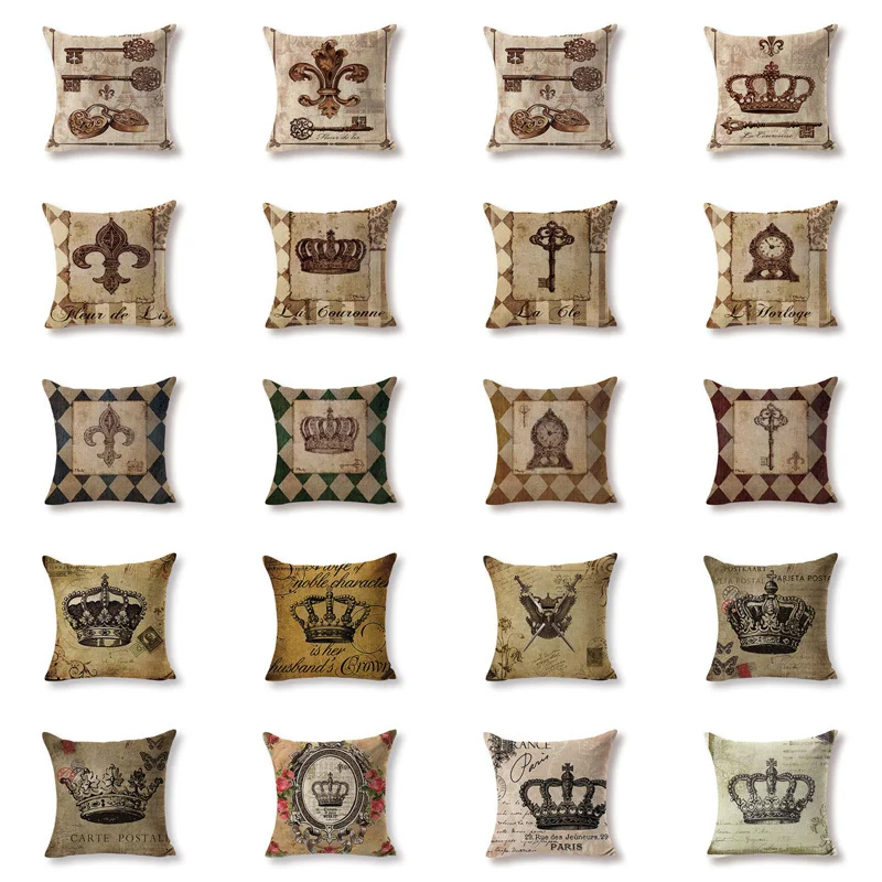 Style 1Vintage Crown Cushion Case Pillow Cover