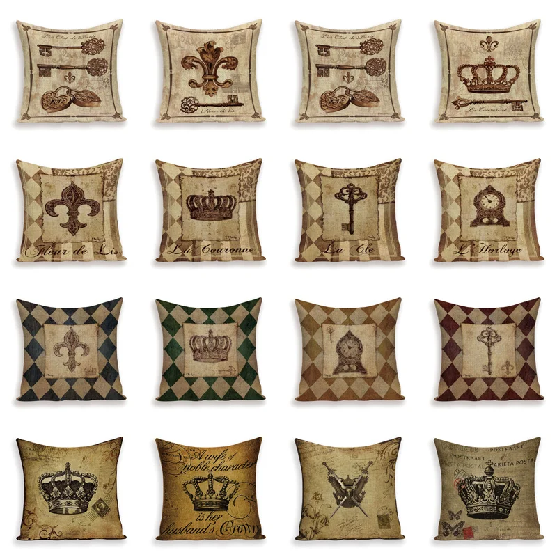 Наволочка для подушки в стиле ретро с короной, наволочка для подушки с Европейским ключом, льняные наволочки для домашнего декора, наволочки для подушки с замком для поясницы, постельные наволочки Kissen