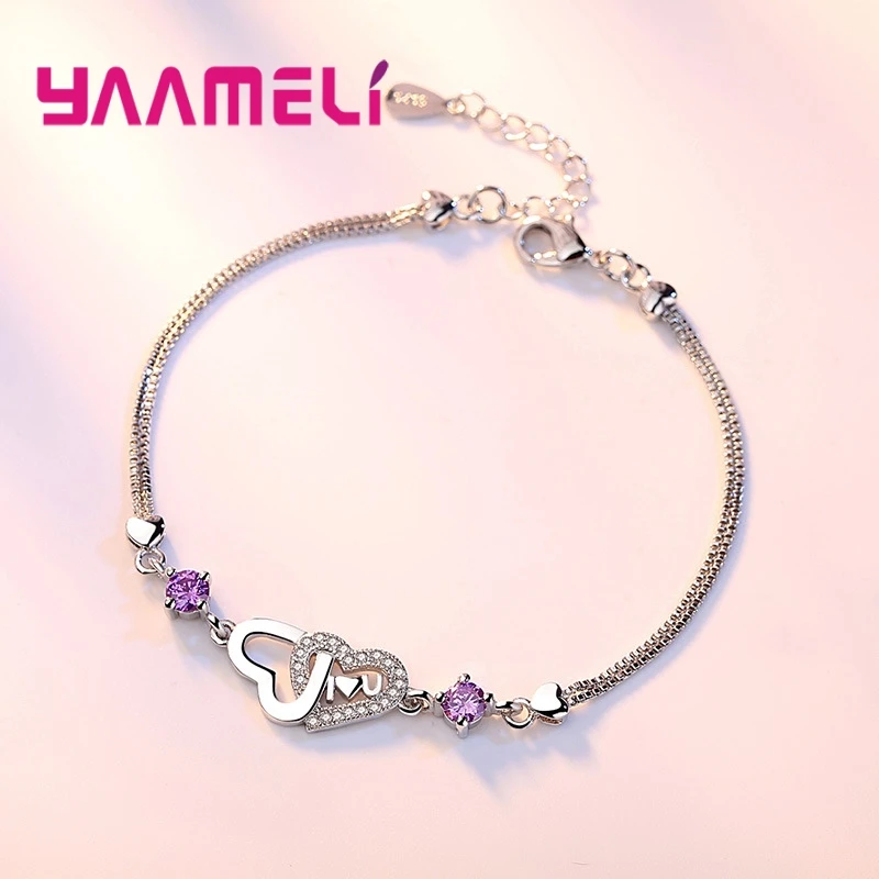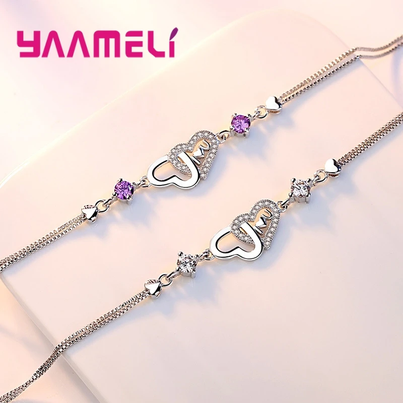 Браслет в форме двойного сердца, фиолетовыйбелый, цвет морской волны