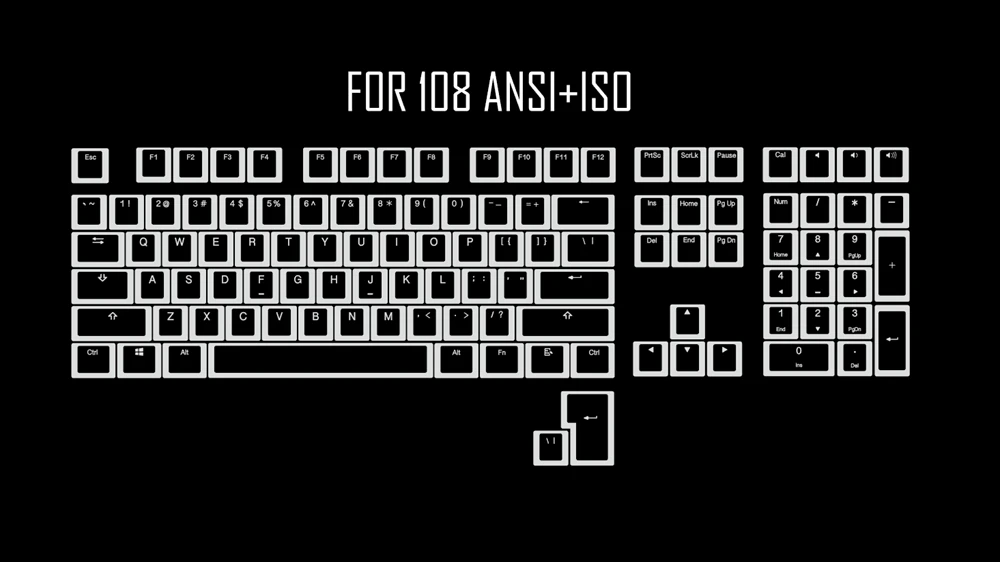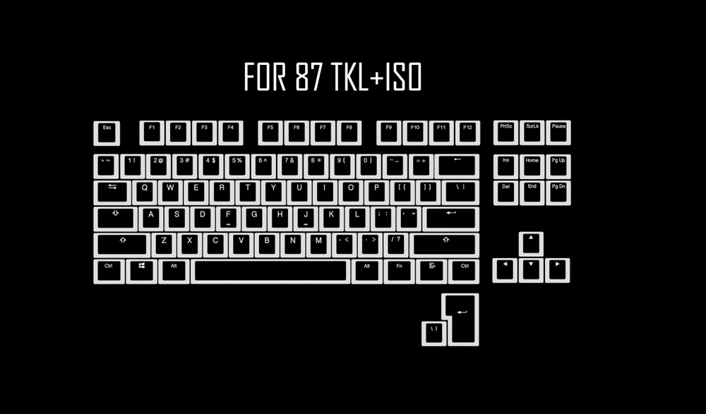 Описание изделия: ISO keycap set. Но это не полный набор (2 клавиши отсутствуют, короткий левый сдвиг и ключ трубы рядом с ISO enter).