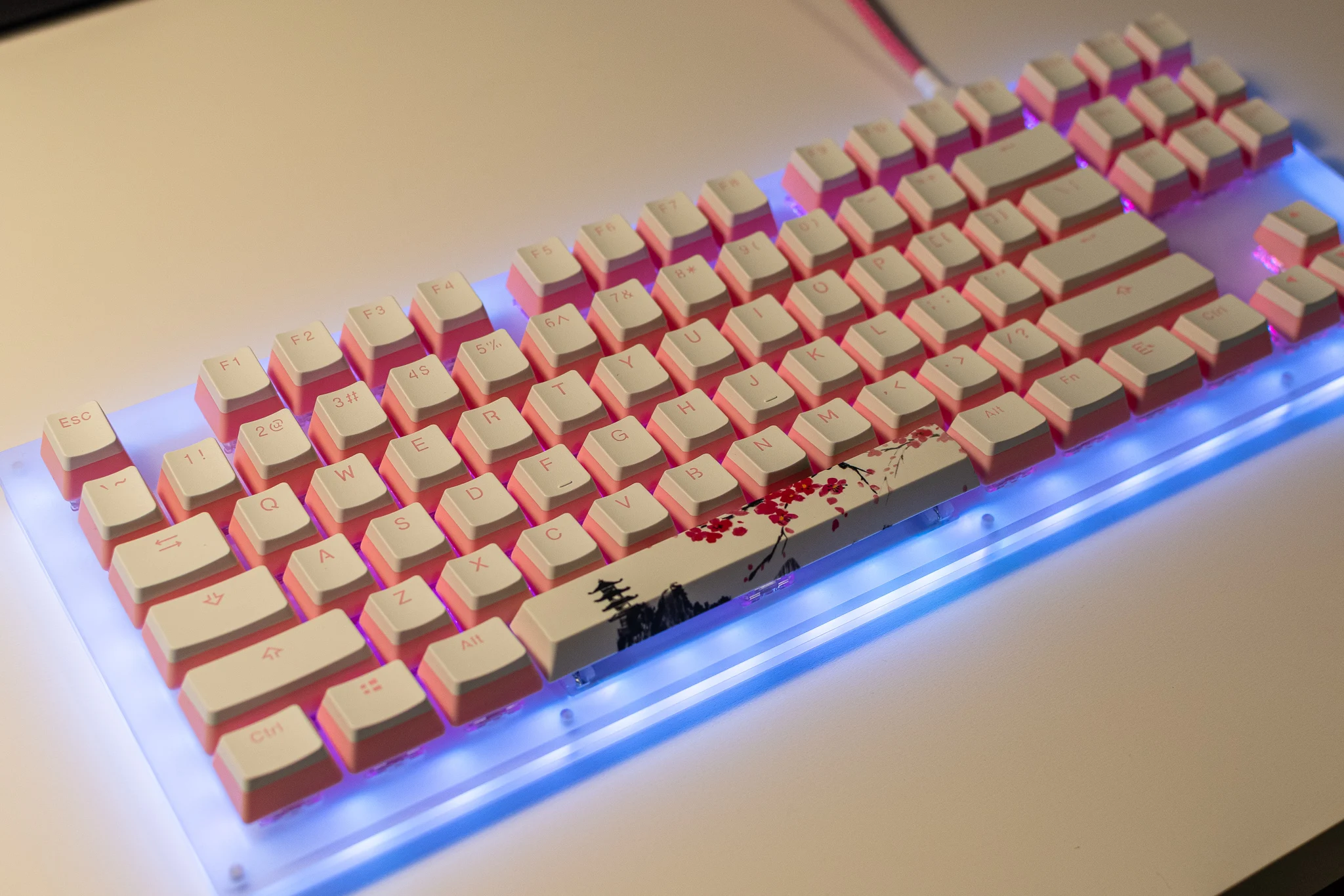 Хорошее качество OEM колпачки, разумно толстые и легенды чистые по цене. Розовый цвет пудинга придает приличное количество светящегося света с ярко-розовым оттенком. Не могу жаловаться на полный комплект по этой цене и рекомендовать. Пробел на фотографиях находится в другом месте.