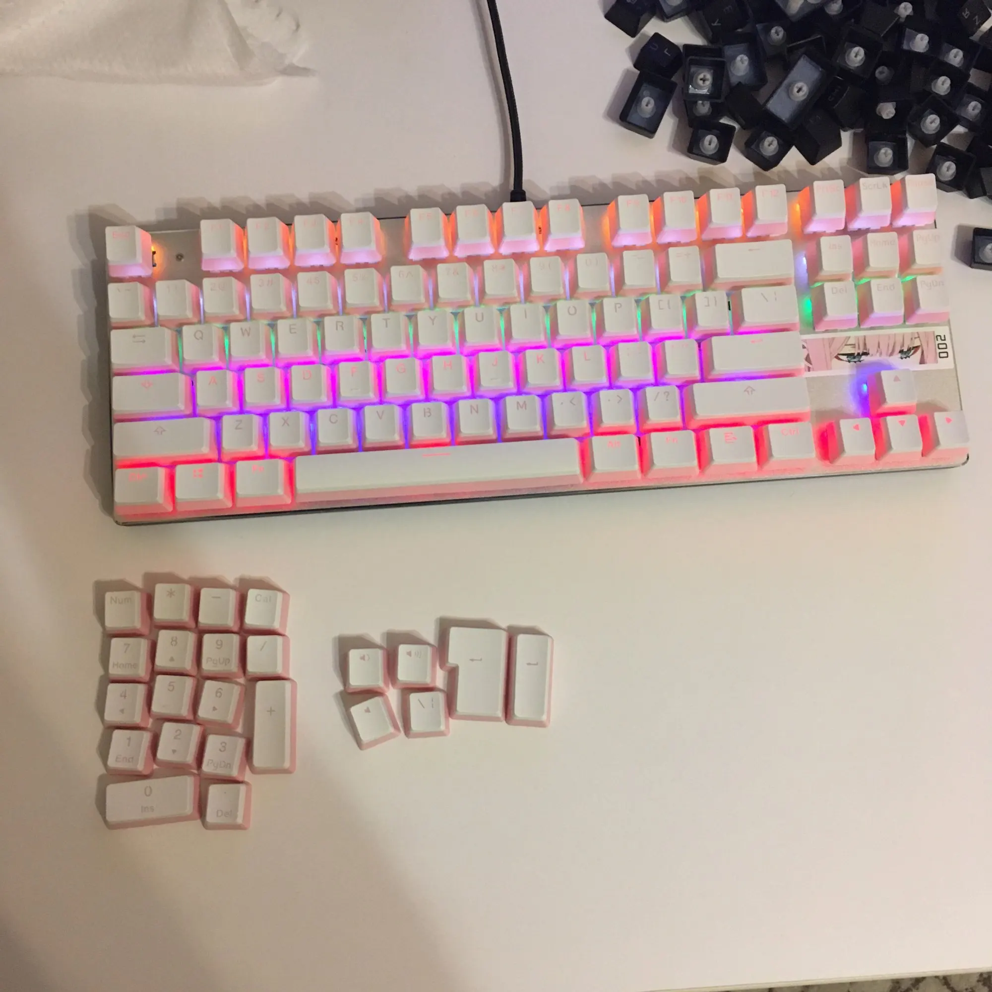 Колпачки очень хороши по цене. Подходит для almoust, идеально подходит для razer blackwidow chroma v2 te. За вычетом 2 клавиш между alt и ctrl справа, а для входа и левого сдвига необходимо удалить их stabelizers. Но все, что они подходят и чувствуют себя отлично. Продавец возвращается.