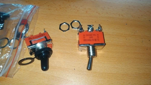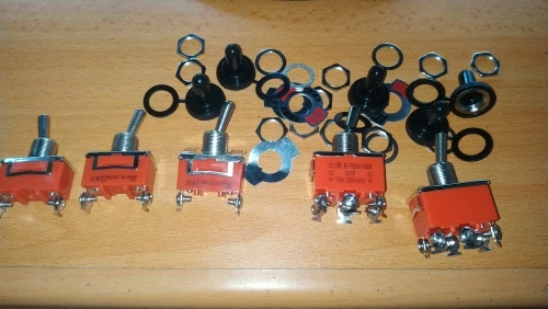 Товар пришел быстро (2 недели). Качеством тумблеров доволен. На 4 из 5 тумблеров нет пластины где обозначено включить и выключить. Но на качество работы все это не влияет.