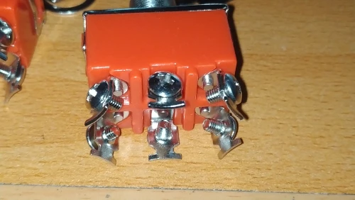 Пришёл за две недели. Именно то, что искал. Три положения и три пары клемм. Одно положение ВЫКЛ, а два других соединяют две центральные клеммы с двумя левыми или правыми.