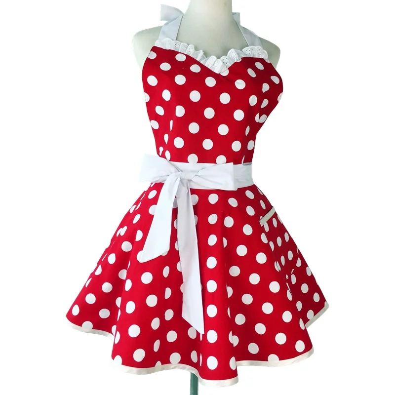 Милое милое красное Ретро фартук для кухни женское Хлопковое платье...