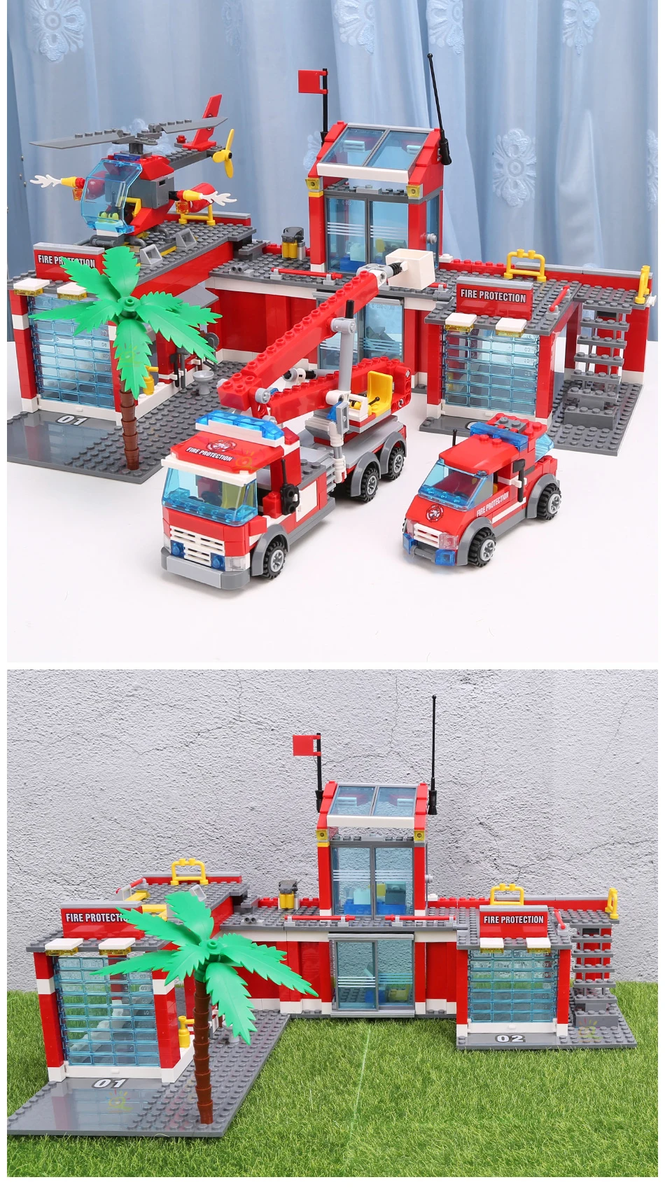 HUIQIBAO 774 шт. Городская пожарная станция модель строительные блоки мальчиков пожарный грузовик развивающие строительные кирпичи игрушки для детей
