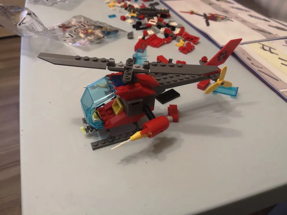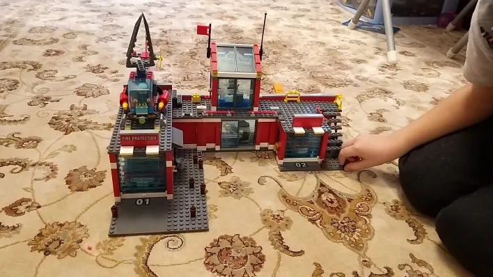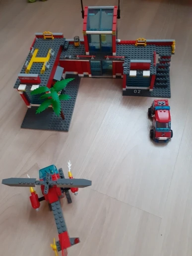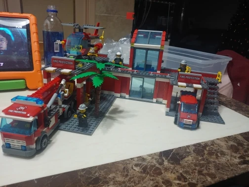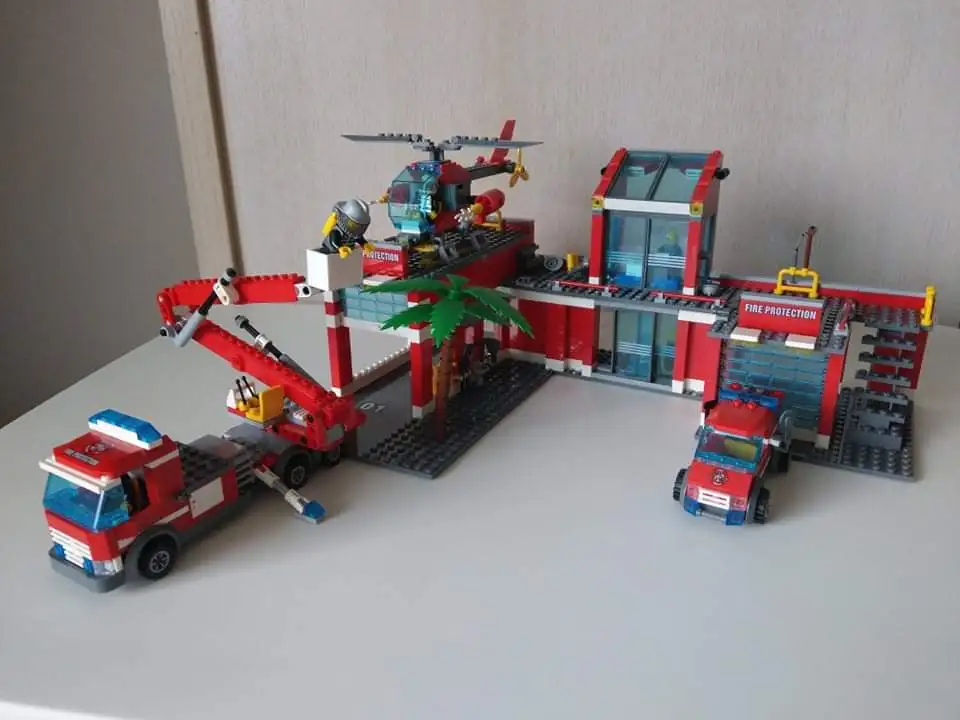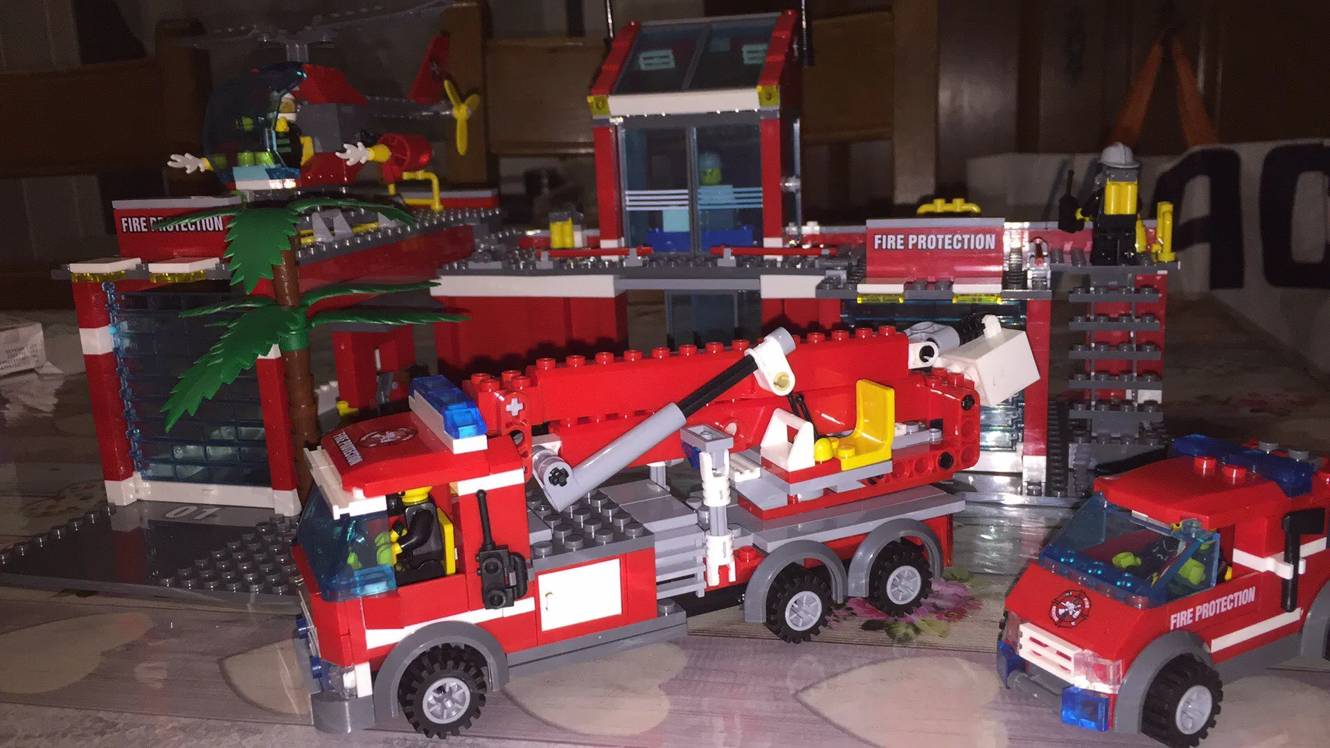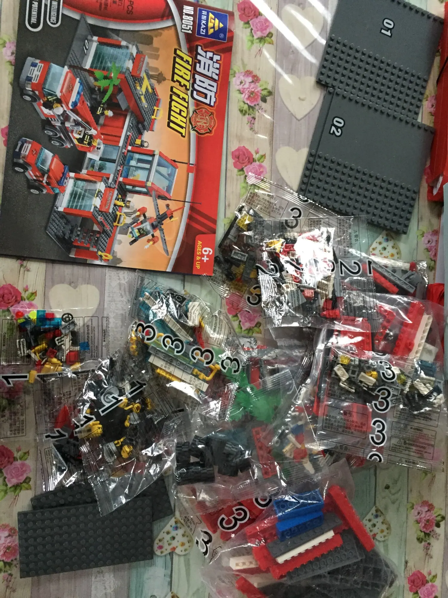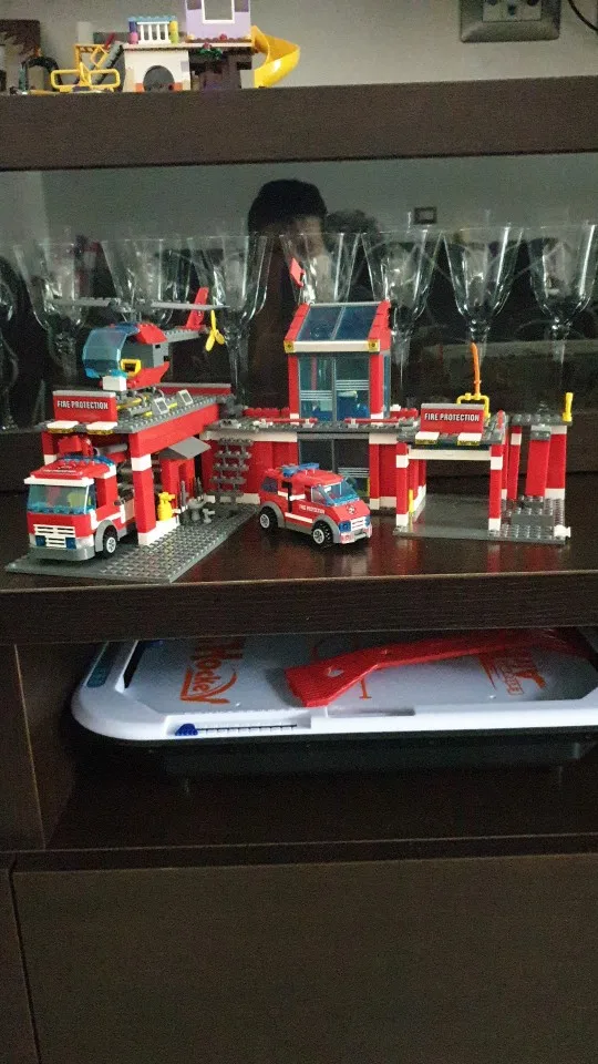 Это не первый набор купленный на Али, но самый лучший. Колличество деталей 774, это не много, но после сборки получается огомный пожарный участок. 2 гаража с открывающимися дверями с вертолетной площадкой. Центральная часть с раздвижными дверями и откидывающейся стеклянной крышей. есть даже кофеварка и 2 чашки;). Вертолет классный. Стекло откидывается и человечка легко можно посадить. Пропеллеры крутятся и не отваливаются. Маленькая машинка примерно с ладонь. Большая машинка -2 ладони в длину. в кабине нет дверей и человечка придется сажать через крышу. Раздвижной элемент подъемника состоит из 2 рукавов, каждый ещё и раздвигается - длина подъемника 50 см! Немного слабоваты поршни, которые держат этот подъемник. Сами детали отличного качества, без запаха и сколов. Детали хорошо подогнаны друг к другу. При этом разборка лёгкая. Инструкция просто мечта. крупная и очень подробная. Детали все, есть небольшой запас. Советую продавца. Покупайте не пожалеете.