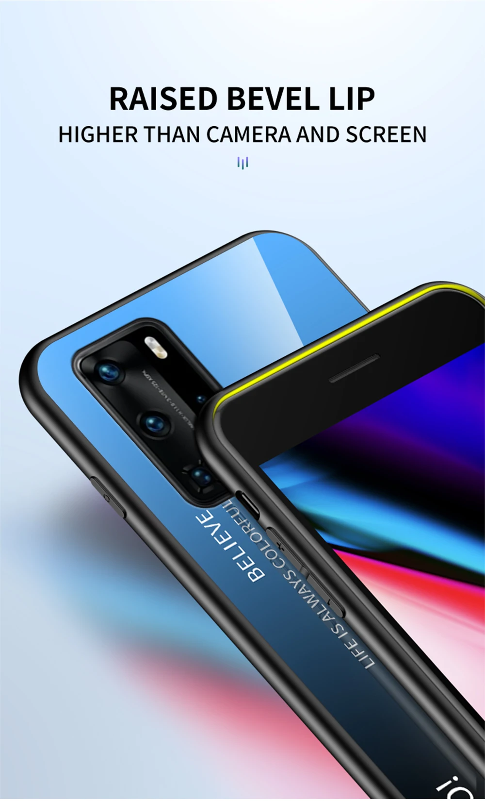 Чехол для телефона, из закаленного стекла, с градиентом, для Huawei P30 P20 P40 Pro Plus P40 Lite E 4G