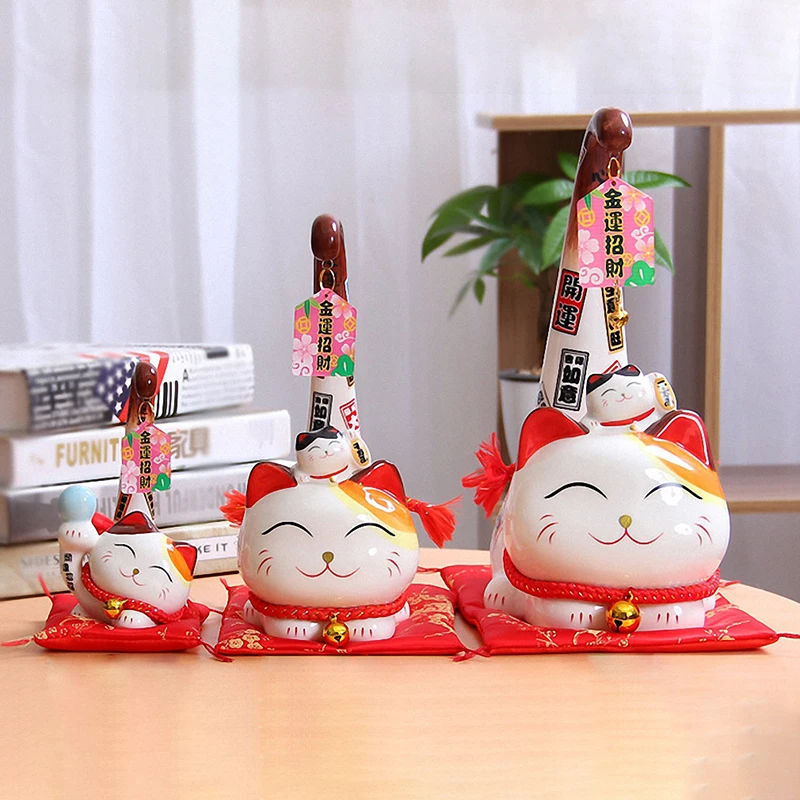 Керамическая статуя Манеки Неко в японском стиле, счастливый кот, мультяшный кошка с длинным хвостом, статуя фэн-шуй, украшение для дома, 1 шт.