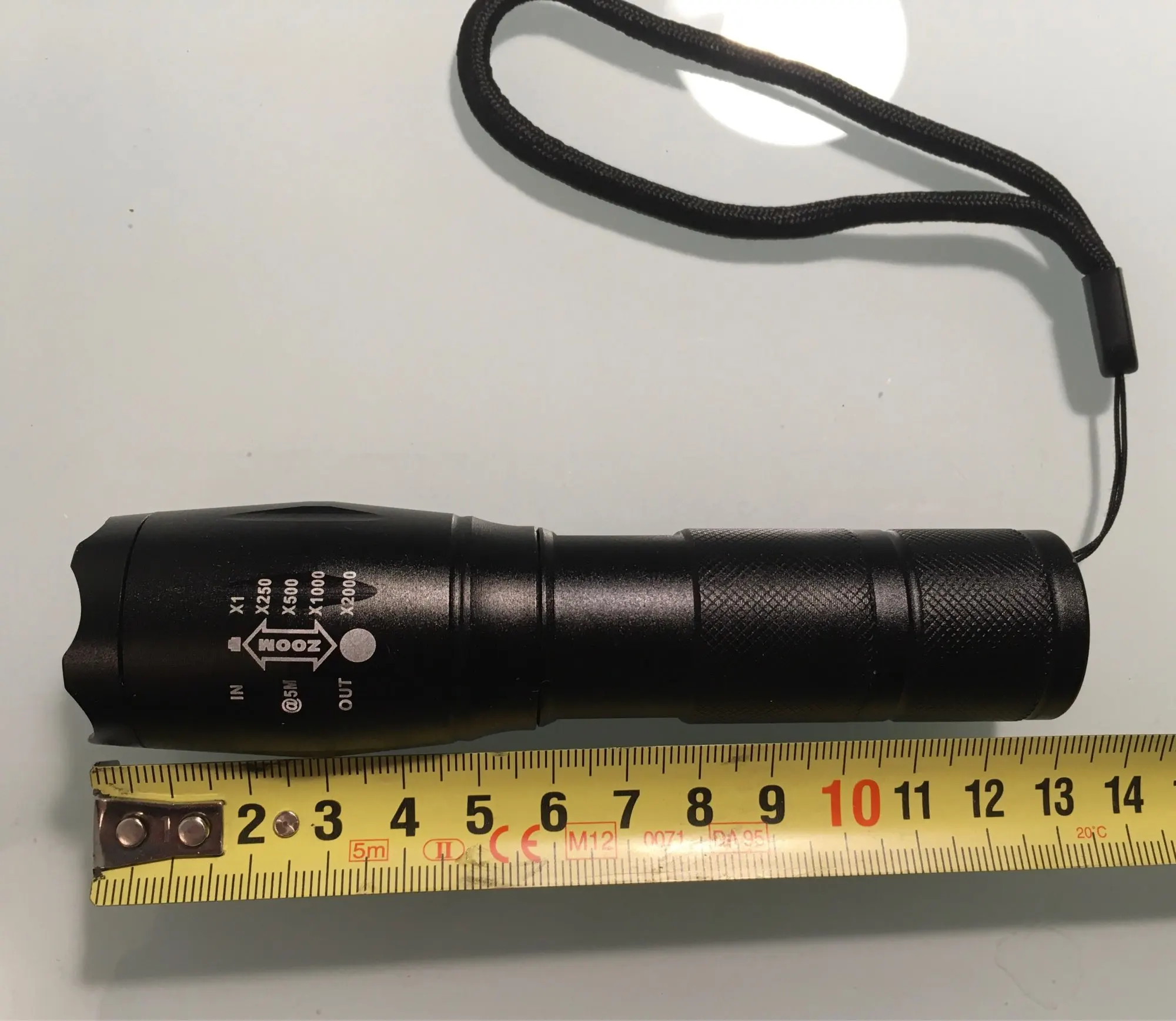 быстро пришел. компактный. светит нехило для своих размеров. зум есть.