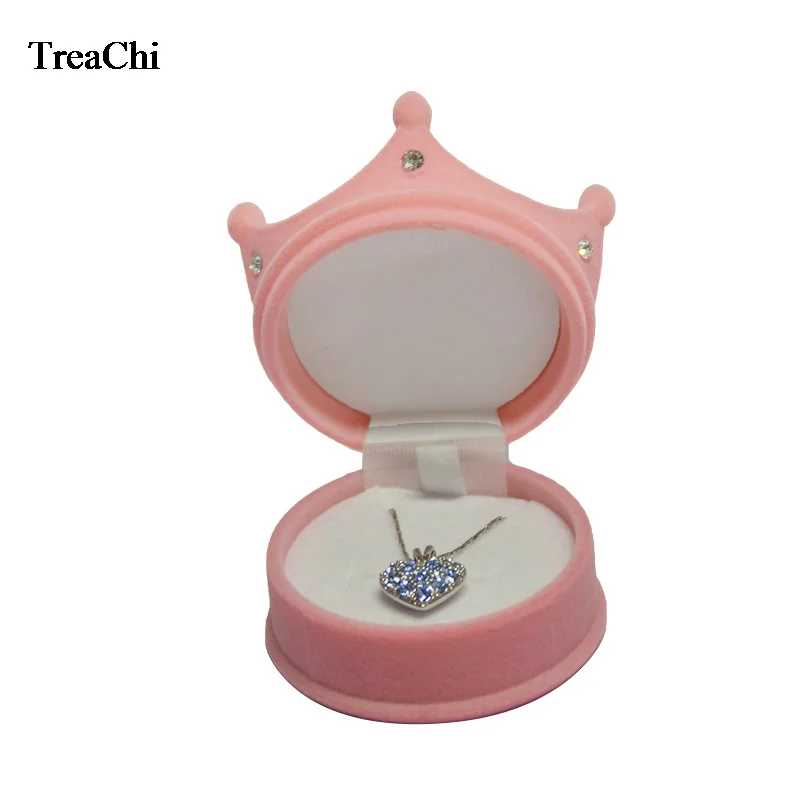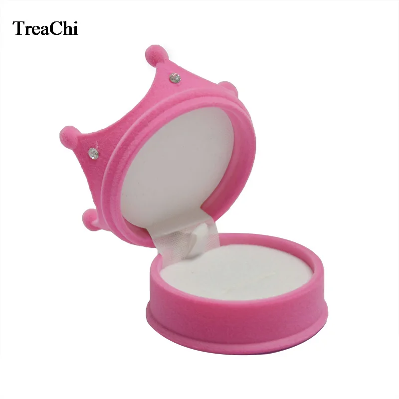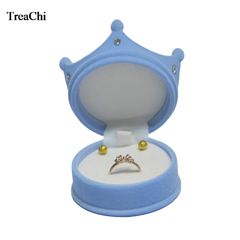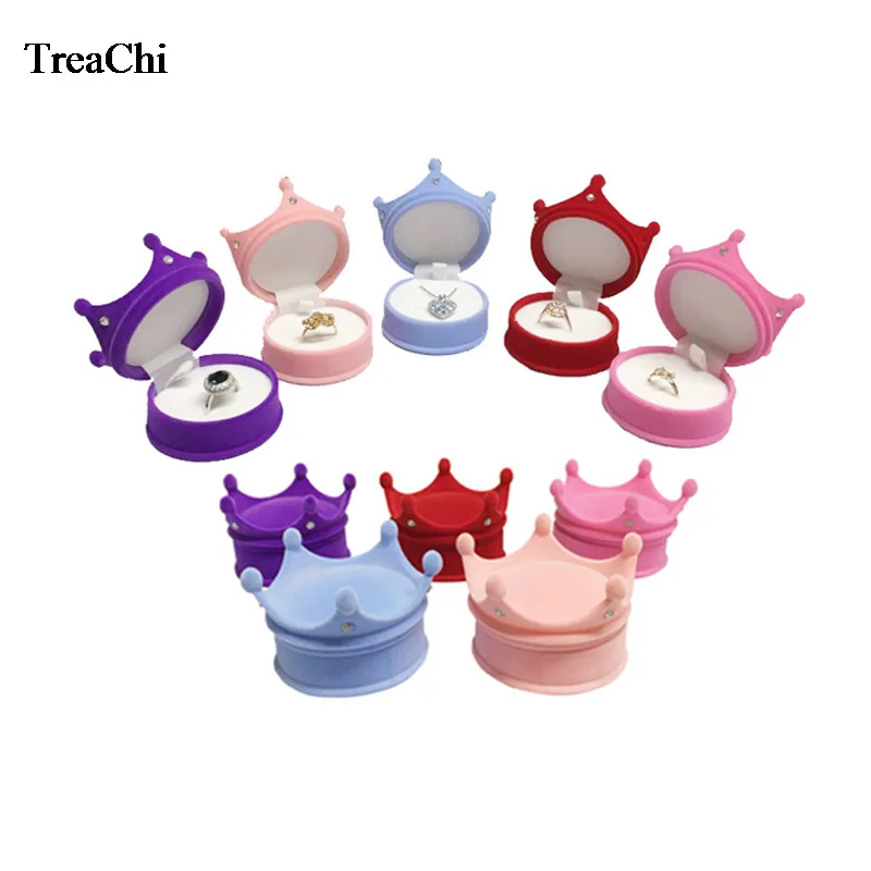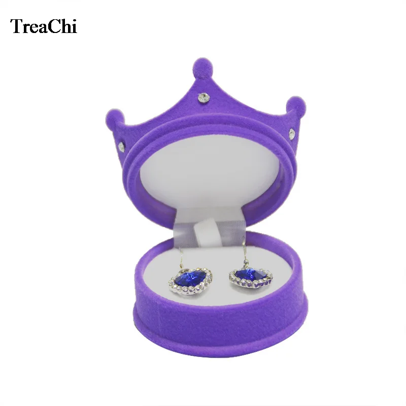 Оптовая продажа 10 шт.лот бархат кольцо Дисплей чехлы-накладки "Принцесса", "в форме короны серьги ящик для хранения ювелирных изделий Контейнер для маленькой девочки ожерелье кольцо подарочная коробка