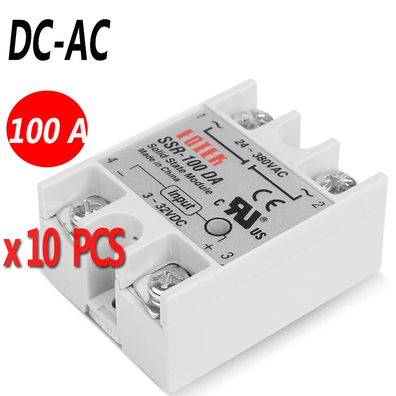 Промышленное твердотельное реле 100A DC-AC, вход 4-32 В постоянного тока и выход 24-380 В переменного тока SSR-100DA, 10 шт., Sinotimer