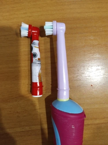 Хорошие детские насадки для электрической зубной щетки, подходят для основы oral-b, ребёнку понравилось чистить зубки это щеткой, потому как сама щёточка чуть меньше и чуть мягче, чем у оригинальной насадки (на фото сравнение с оригинальной). Доставка до Екатеринбурга - месяц.