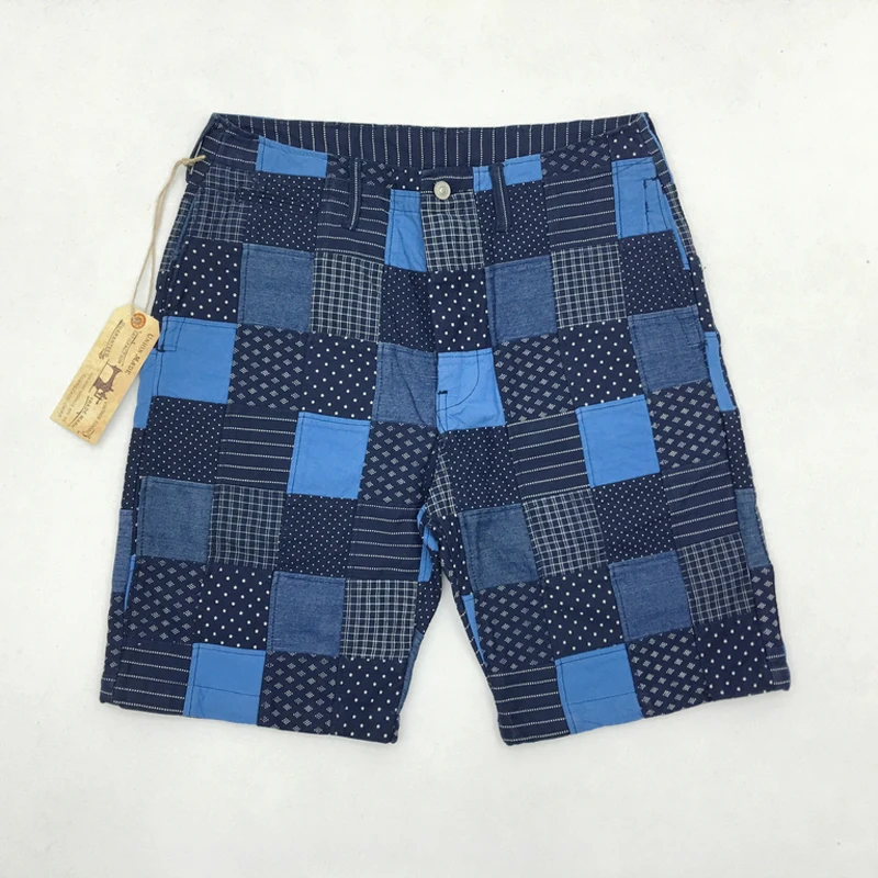 Мужские клетчатые шорты в стиле ретро BOB DONG, повседневные шорты цвета индиго в стиле пэчворк