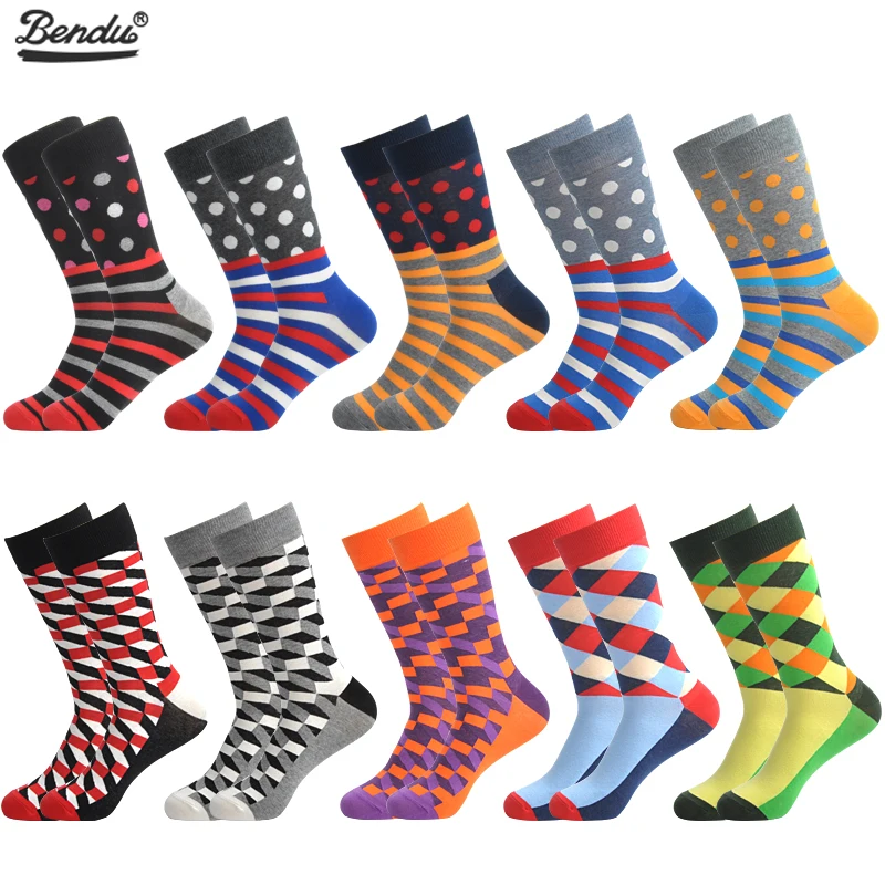 Мужские носки BENDU 10 парлот, модные забавные цветные длинные носки из чесаного хлопка, носки для счастливой свадьбы, повседневные носки для делового платья
