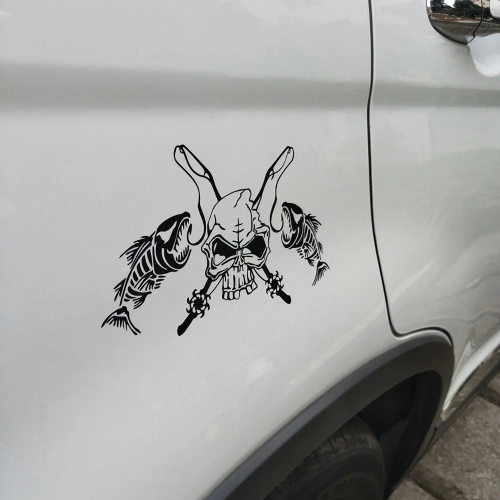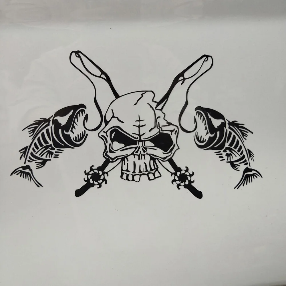 QYPF 19,7*11,1 см рыболовный Череп Скелет рыболовная удочка крючок Автомобильная наклейка грузовик окно виниловая наклейка C16-0017