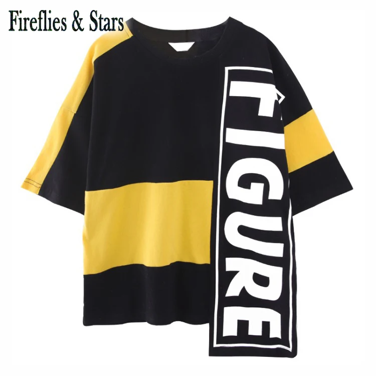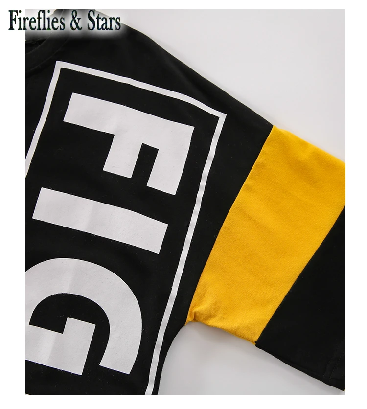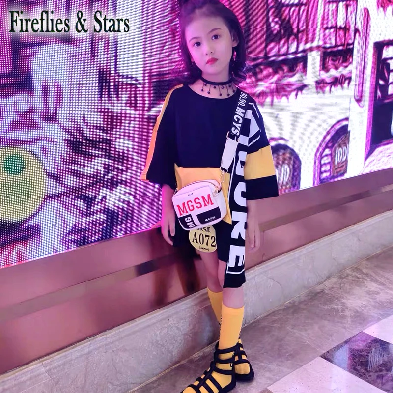 Летнее платье-футболка для девочек, детское платье, Детская уличная одежда, длинная футболка для малышей с асимметричными нашивками и буквенным принтом от 4 до 14 лет