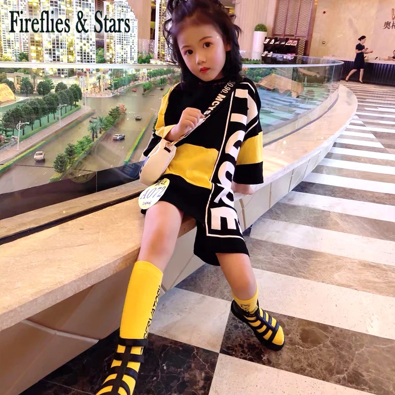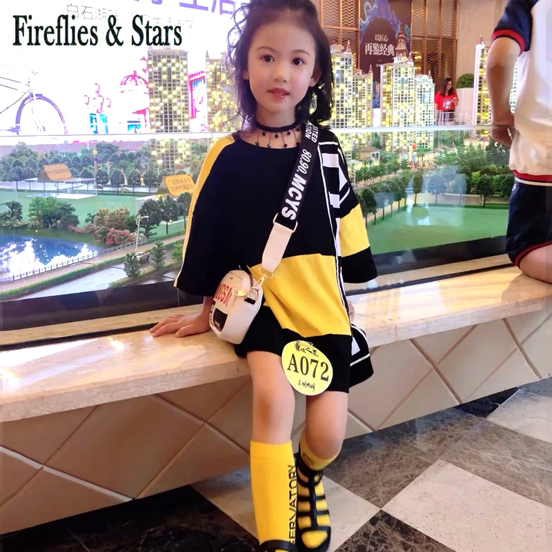 Название:Летняя футболка для девочек; Платье для малышей; Детское платье; Детская уличная одежда; Длинная футболка для малышей; Необычная нашивка с буквенным принтом; Возраст от 4 до 14 лет