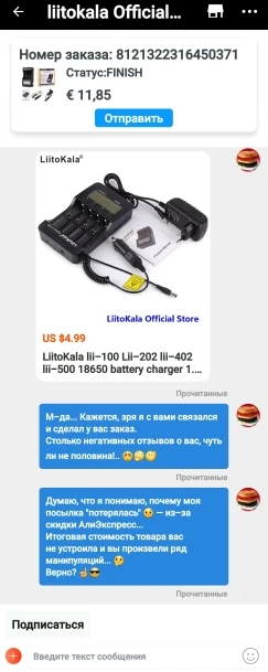 Продавец быстро отправил заказ. Доставка тоже была быстрой. Зарядник работает хорошо. Описывать сам зарядник не вижу смысла, т.к. в интернете есть множество обзоров. В целом все хорошо, к покупке советую.