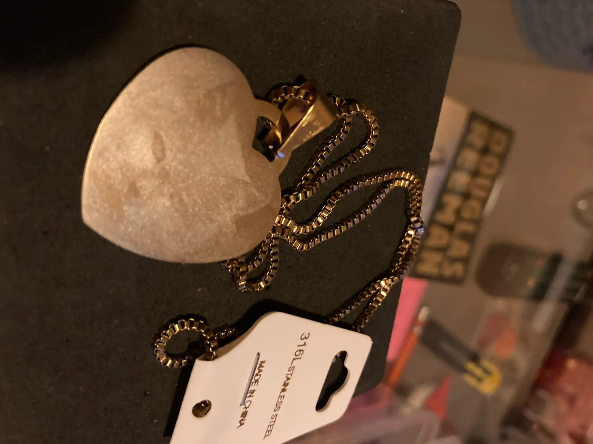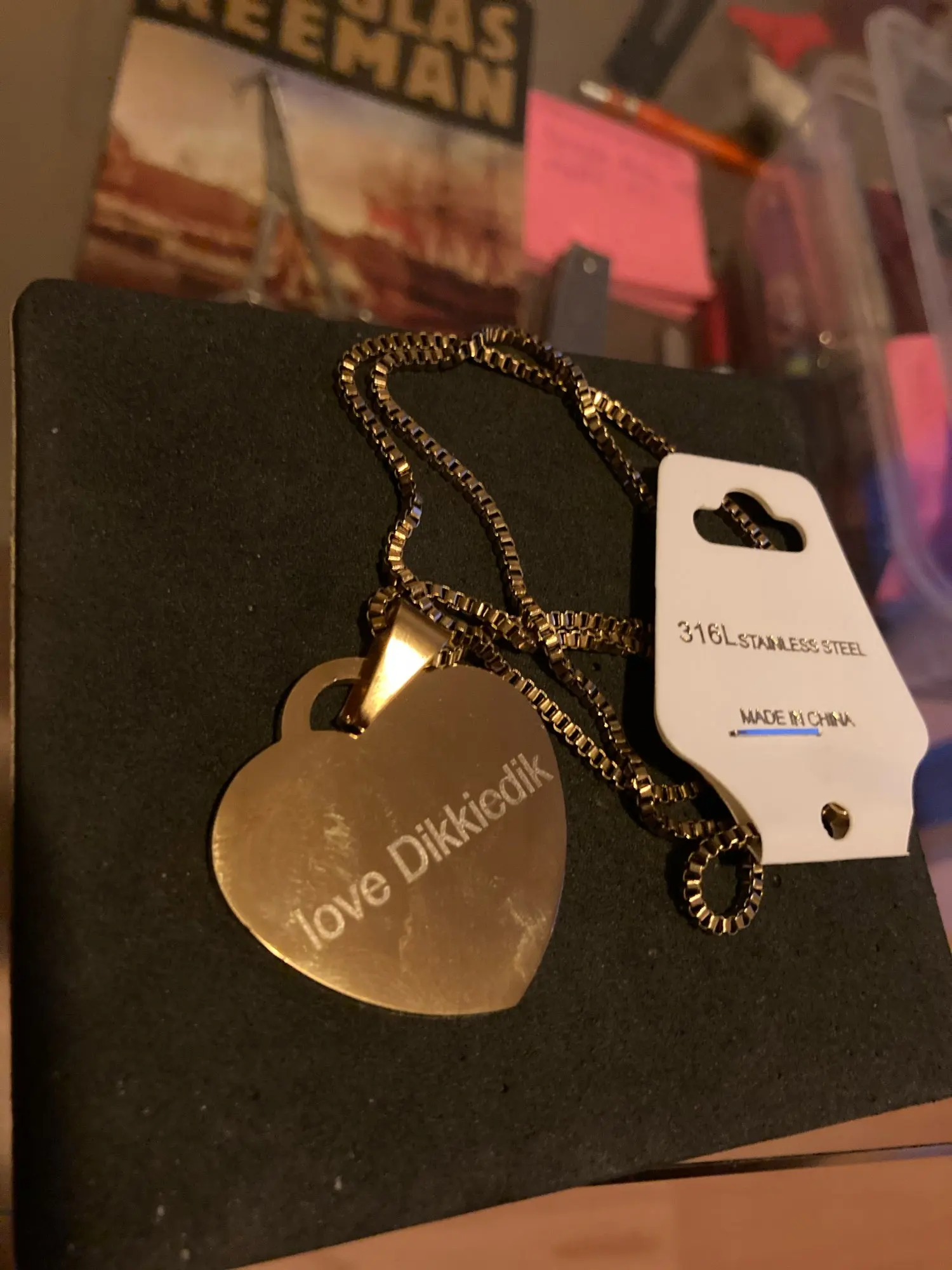 Je ziet de foto bijna niet en de keting is kapot toegekomen