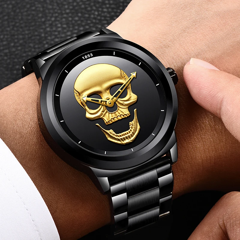 Мужские кварцевые наручные часы LIGE Skeleto, повседневные водонепроницаемые часы с 3D черепом, полностью из стали, в Военном Стиле