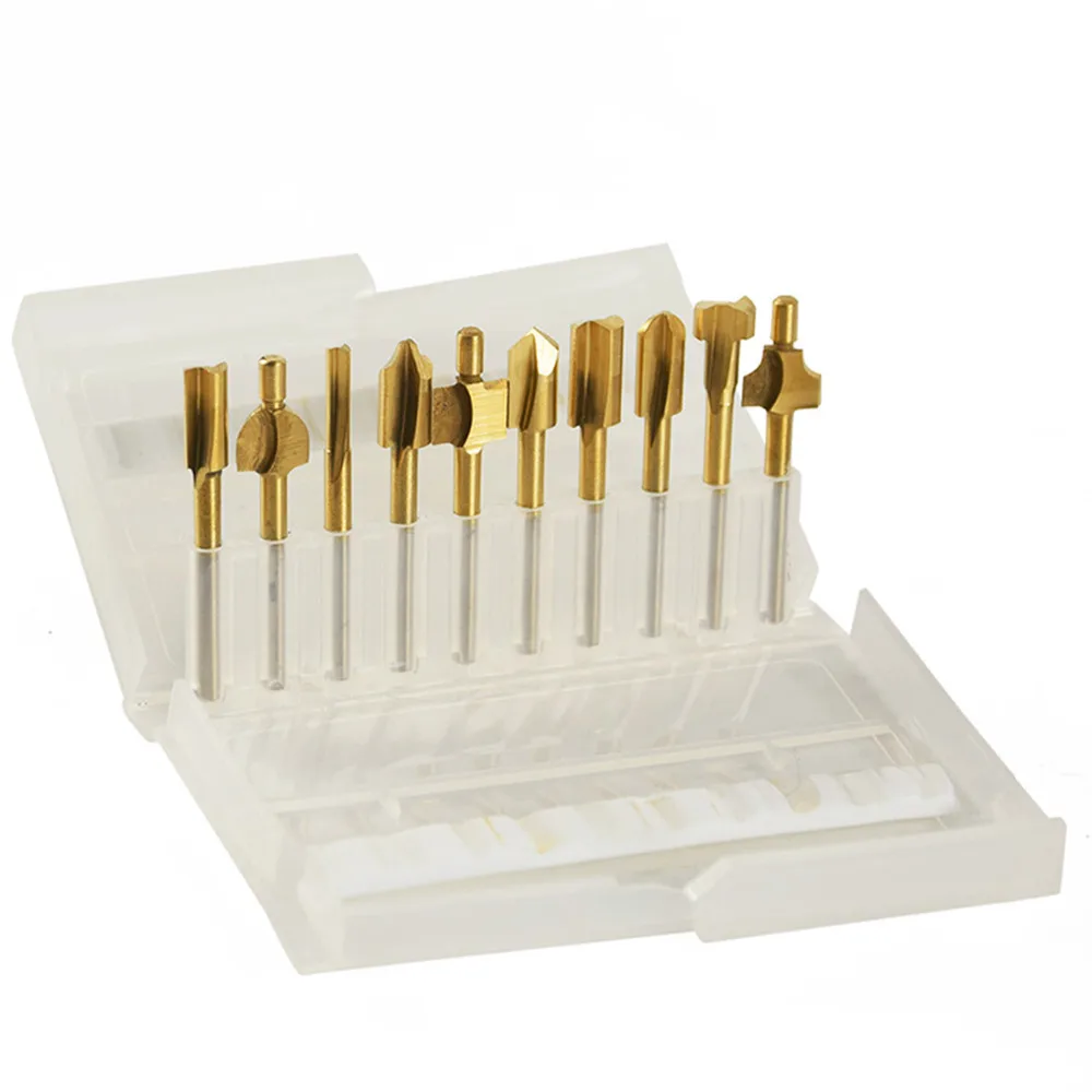 Фрезы для древесины HSS, 18 дюйма, с титановым покрытием, мини-фрезы 3 мм, подходит для Dremel поворотный комплект, плотницкого инструмента с футляром
