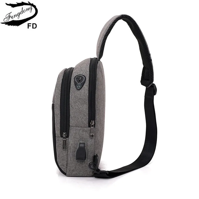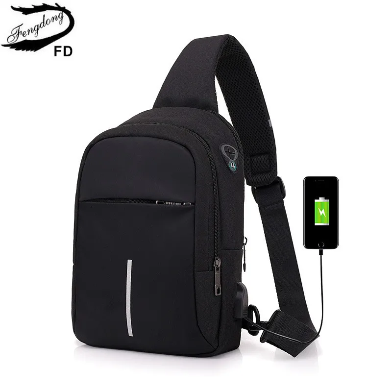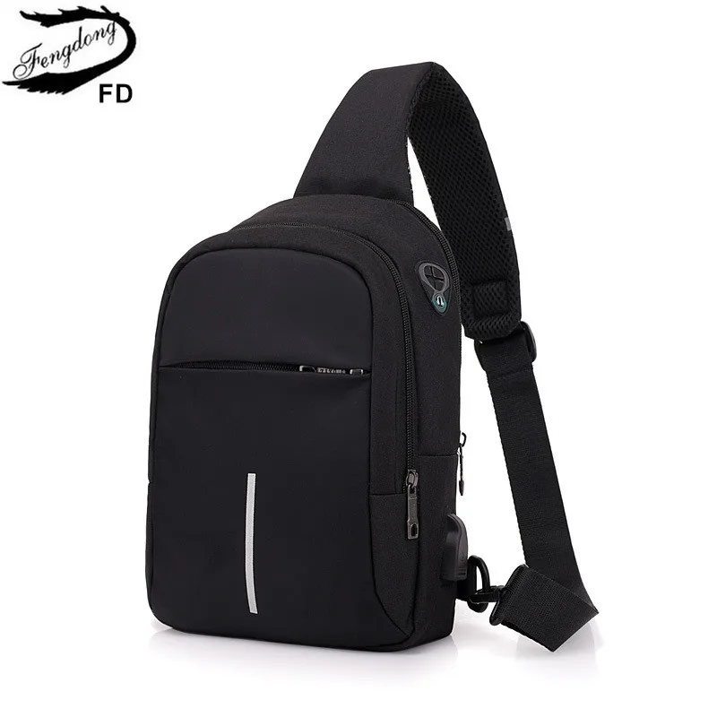 Мужская маленькая сумка-Кроссбоди Fengdong, черная Повседневная Сумка-слинг на одно плечо с usb-разъемом, осень