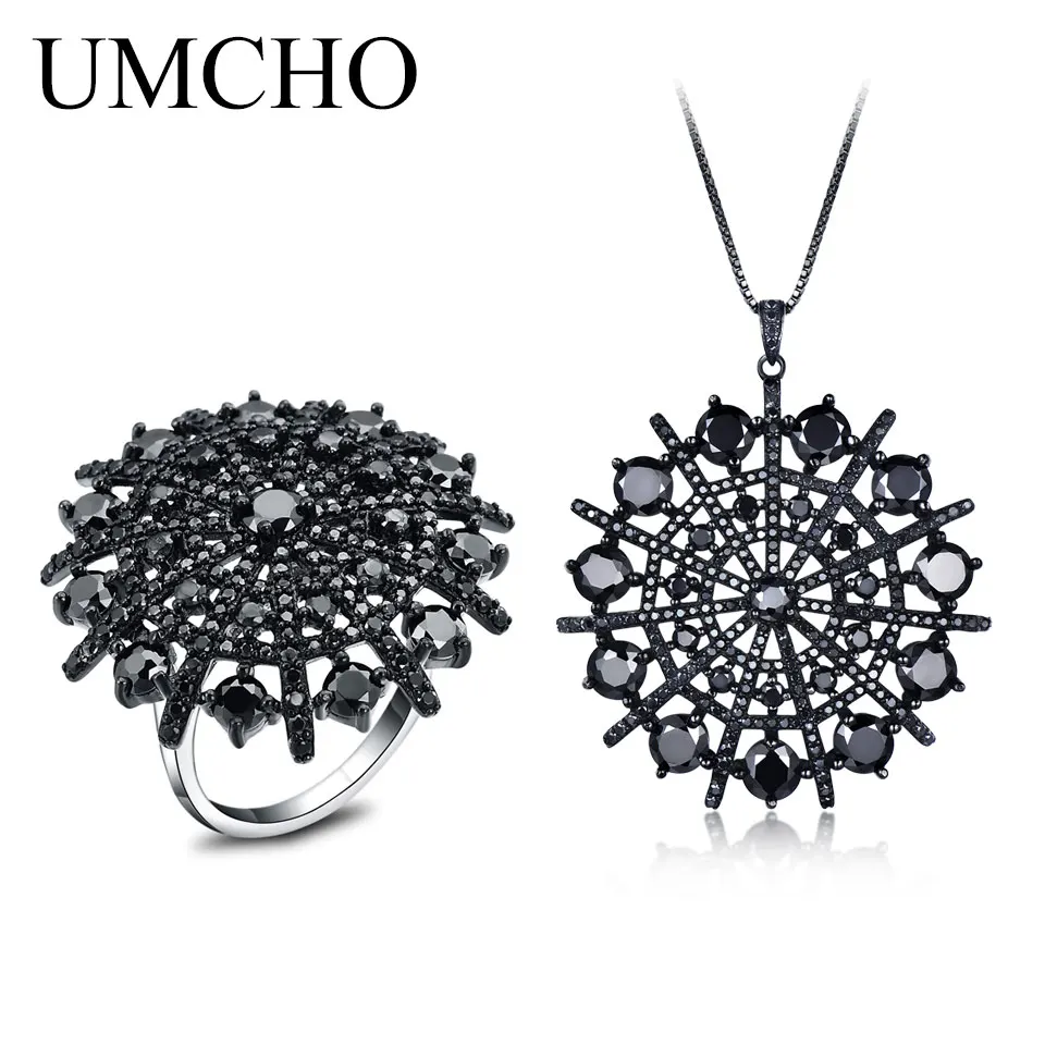 UMCHO Hyperbole драгоценный камень натуральный черный Шпинель ожерелья подвески кольца для женщин Твердые стерлингового серебра 925 пробы ювелирные изделия вечерние подарки