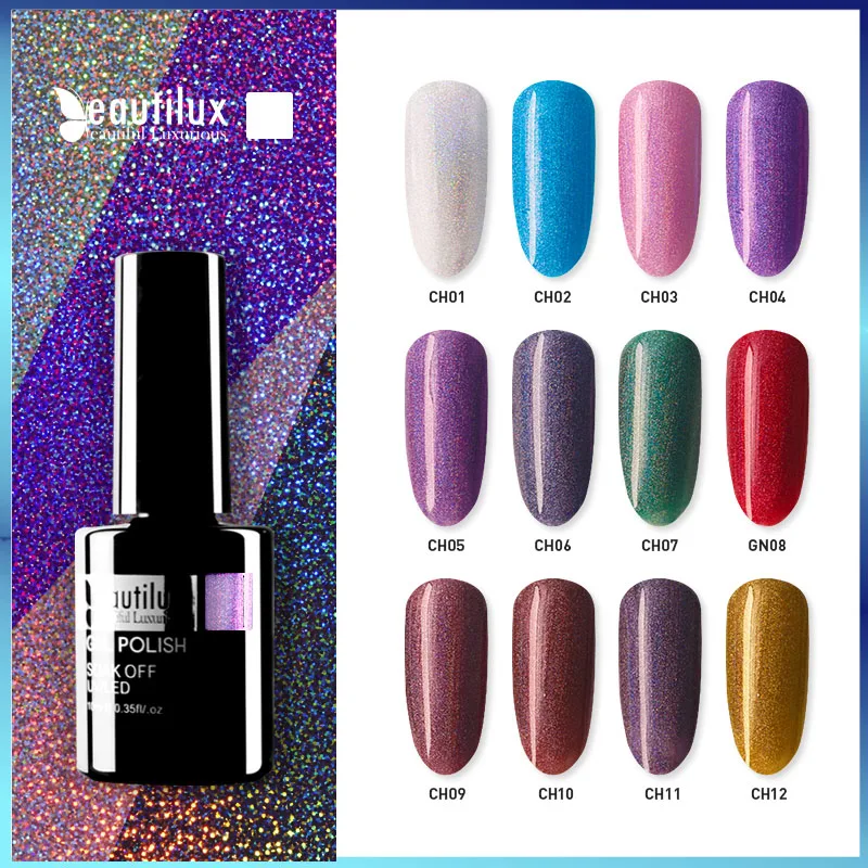 Гель-лак с голографическими блестками, УФ-гель для ногтей радужных цветов, 10 мл, 1 шт.