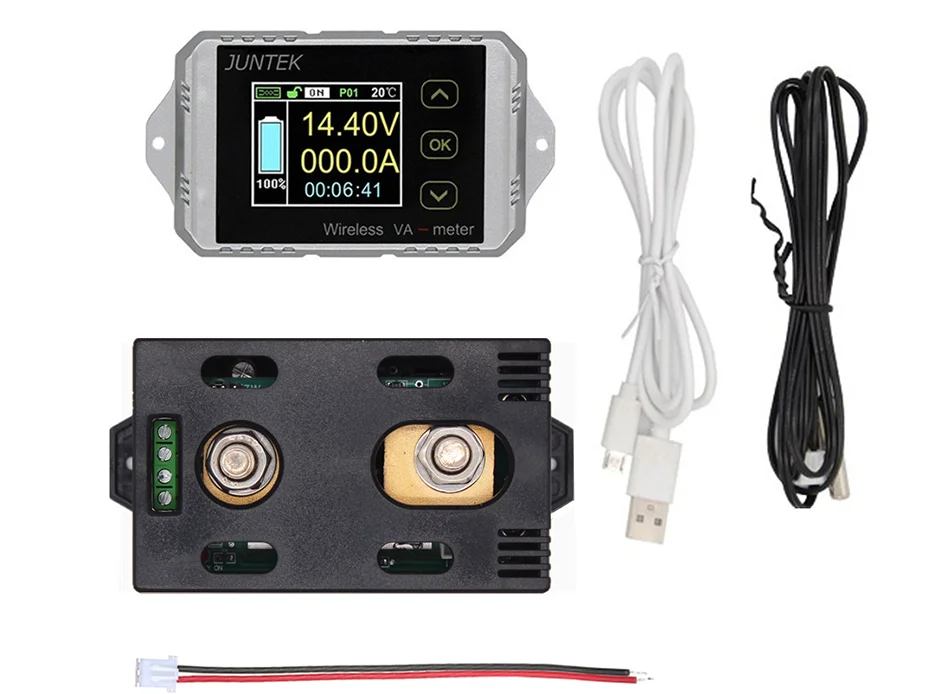 VAT серия измеритель тока и напряжения-это беспроводной цветной экран с кабелем для измерения напряжения постоянного тока, тока, мощности, заряда-разрядки, ватт-часов, времени и температуры. Прибор разделен на две части: измерительный модуль и модуль дисплея. Дисплейного модуля принимает 1,8 дюймов высокой четкости цветной ЖК-дисплей дисплей, который очень подходит для monittoring емкость батареи электрических транспортных средств и мониторинга рабочего состояния цепи постоянного тока.