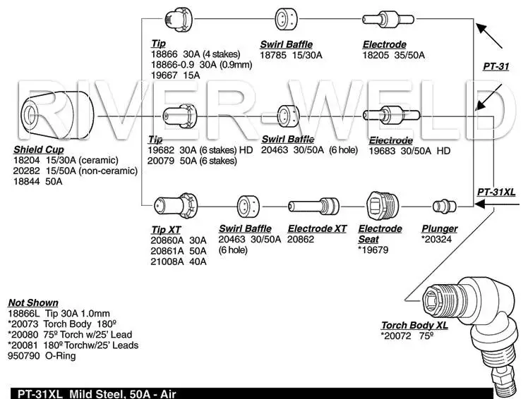 Расходные материалы могут работать с ESAB/L-TEC PT-31, JG-40 и WSD-LG40 фонарь для резки,