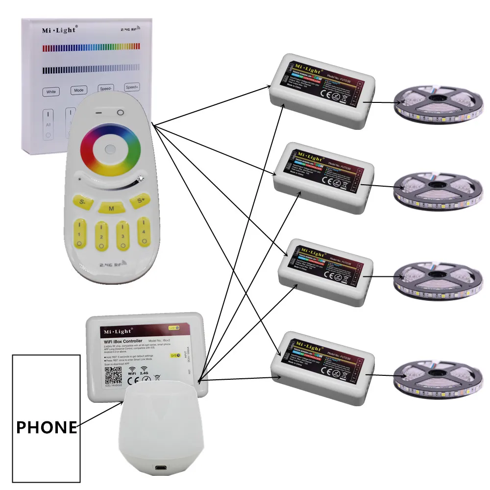 Mi light 2,4G беспроводной wifi Приложение iOS Android RF пульт дистанционного управления для RGBWW 3528 5050 Светодиодная лампа
