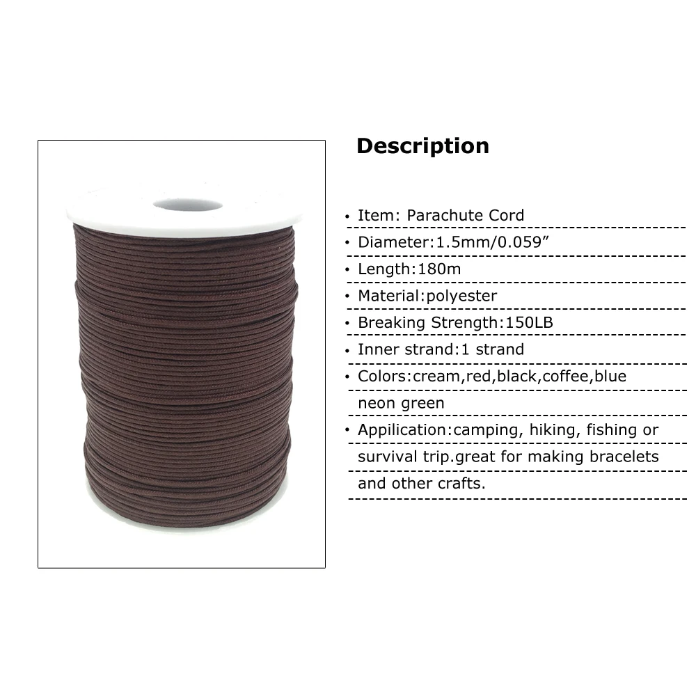 Паракорд YOUGLE, 180 метров, 1 нить, 150 фунтов, 1,5 мм, парашютный шнур, шнур для палатки, леска для рыбалки, кемпинга, походов на открытом воздухе