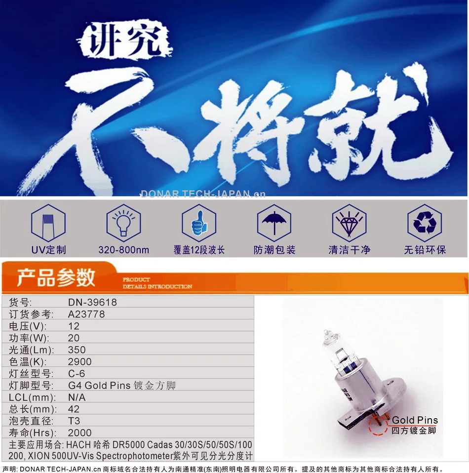Спектрофотометр DONAR DN-39618 A23778 12 В 20 Вт, G4 золото 12 В 20 Вт, вольфрамовая галогенная лампа, Hach DR 5000, анализатор, УФ-источник светильник