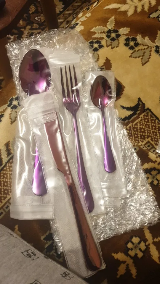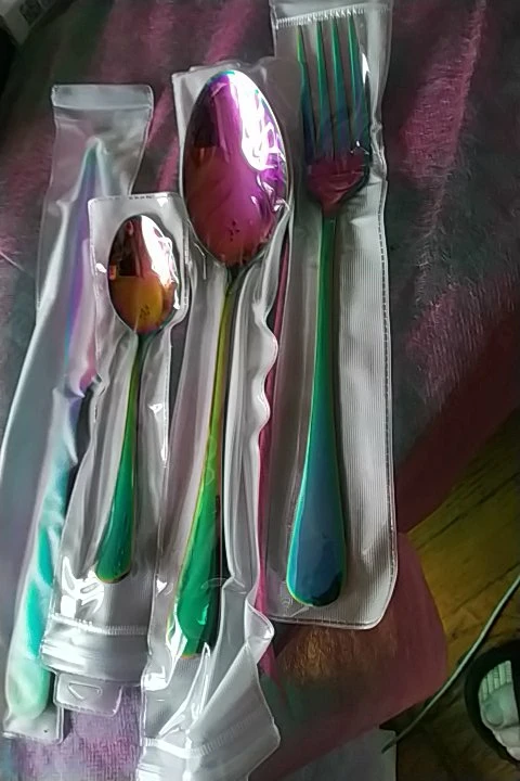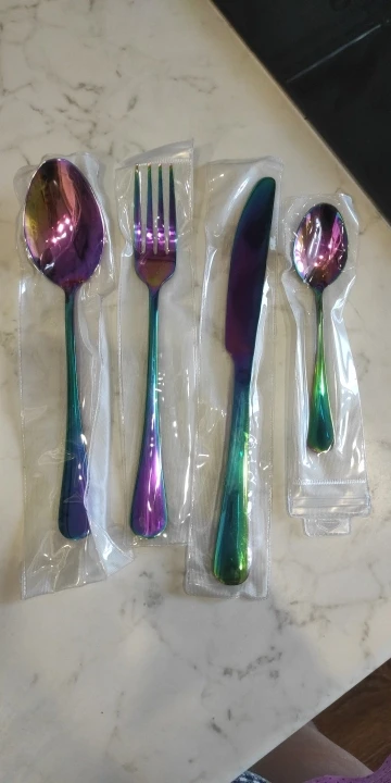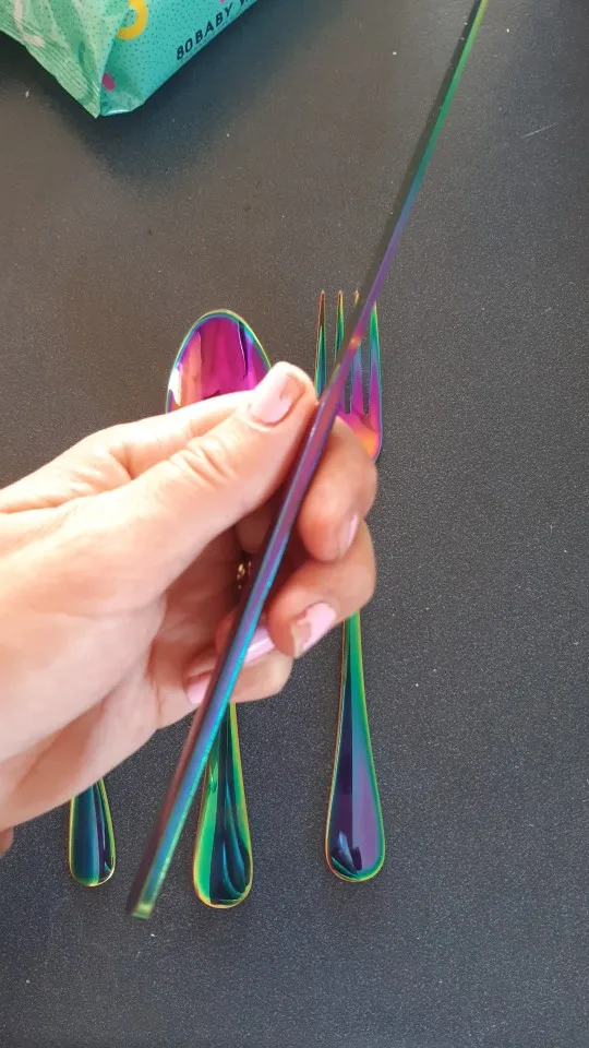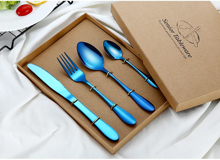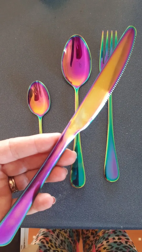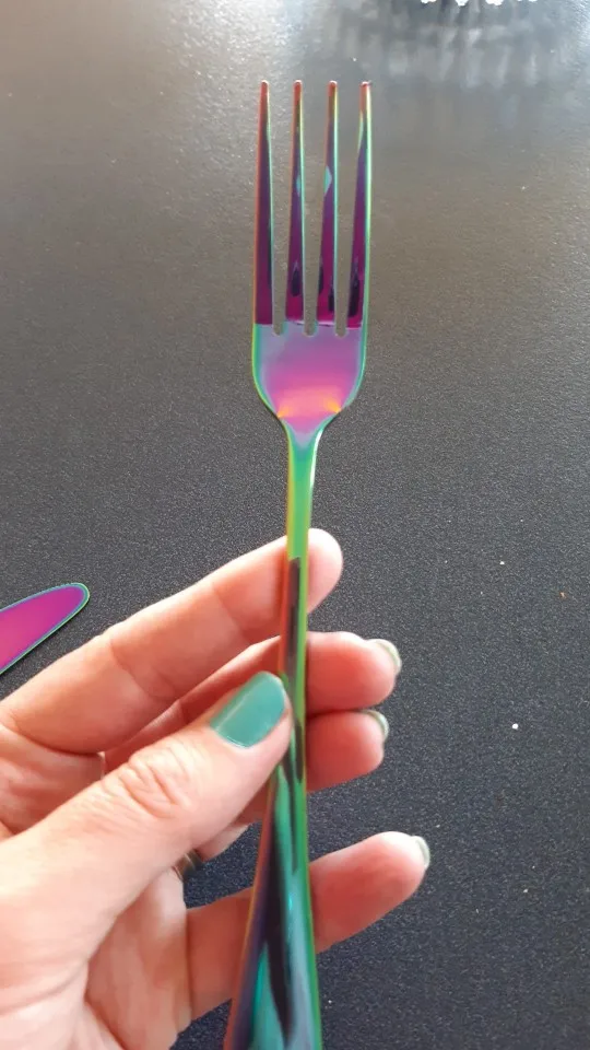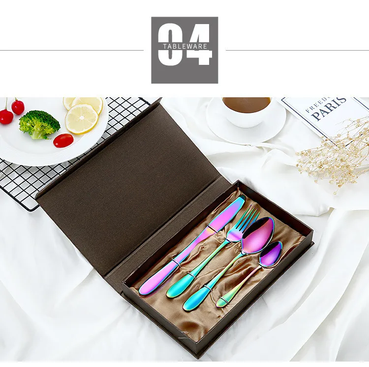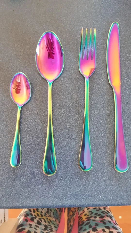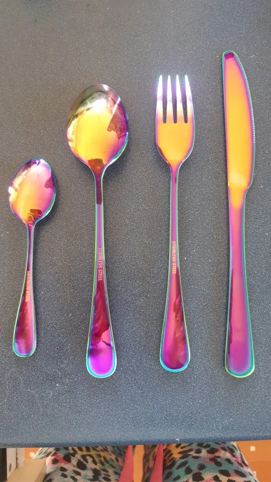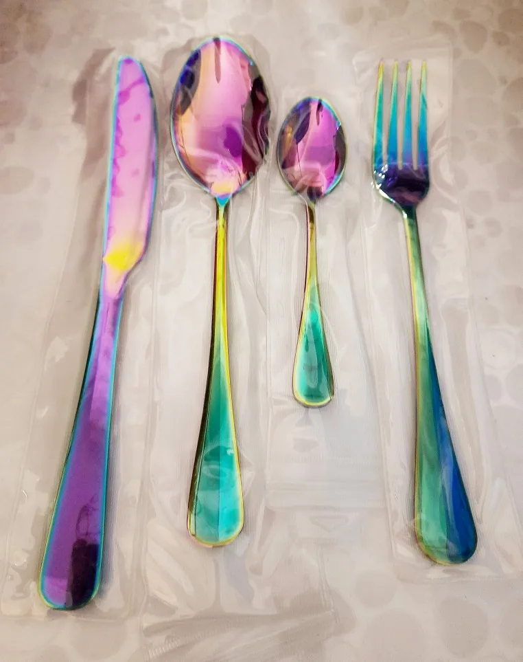 Набор столовых приборов из нержавеющей стали, разные цвета, 2018, Набор радужных столовых приборов, черный