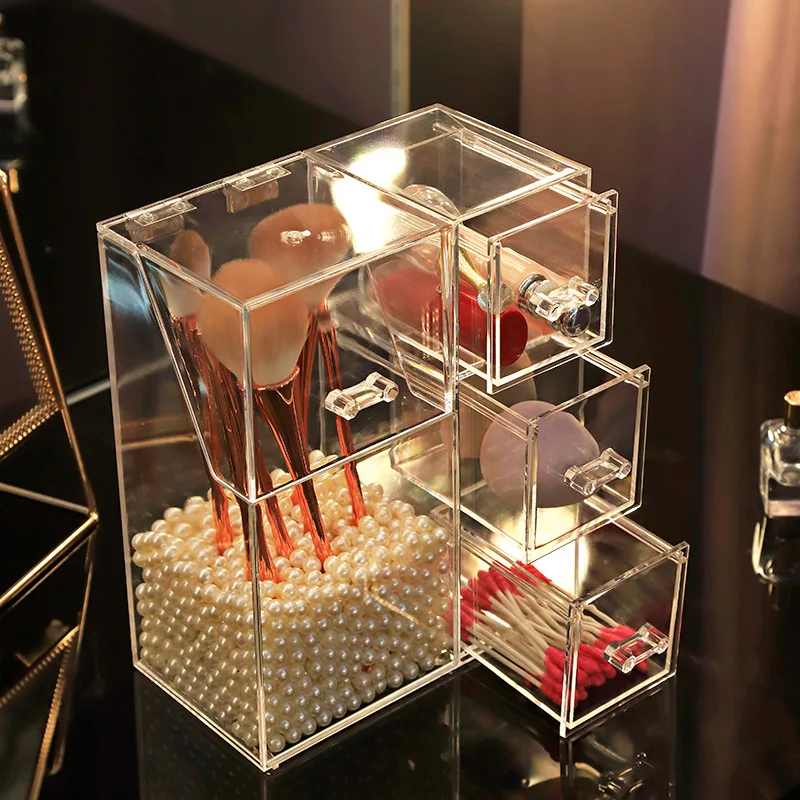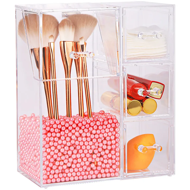 Прозрачная акриловая жемчужная коробка-раскладушка для макияжа с ящиком, держатель для помады, кистей для макияжа, коробка, органайзер для ювелирных инструментов косметики
